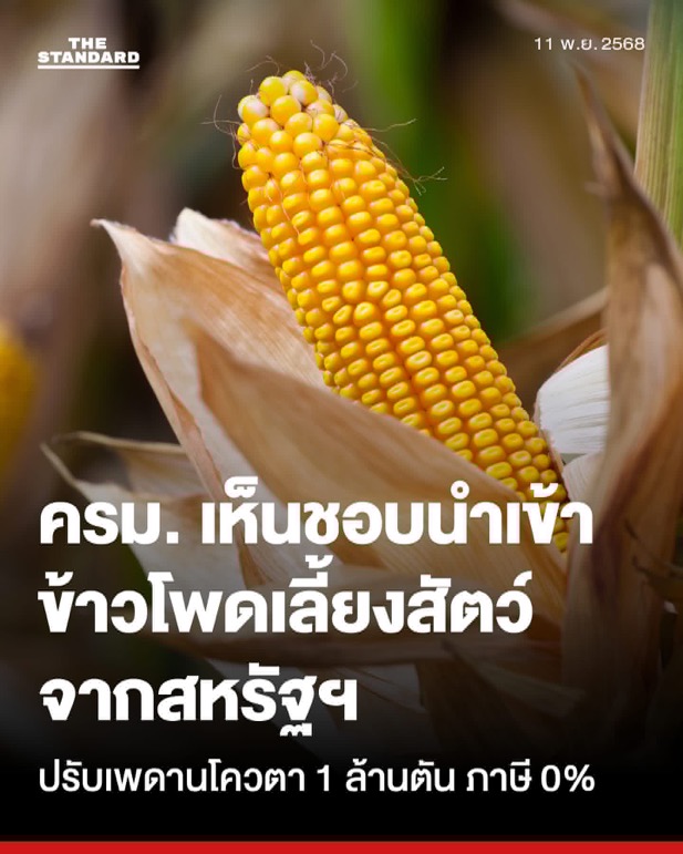 ครม. เห็นชอบนำเข้าข้าวโพดเลี้ยงสัตว์ ปี 69 ปรับเพดานโควตา 1 ล้านตัน ภาษี 0% แต่ต้องรับซื้อในประเทศ 3 ต่อ 1