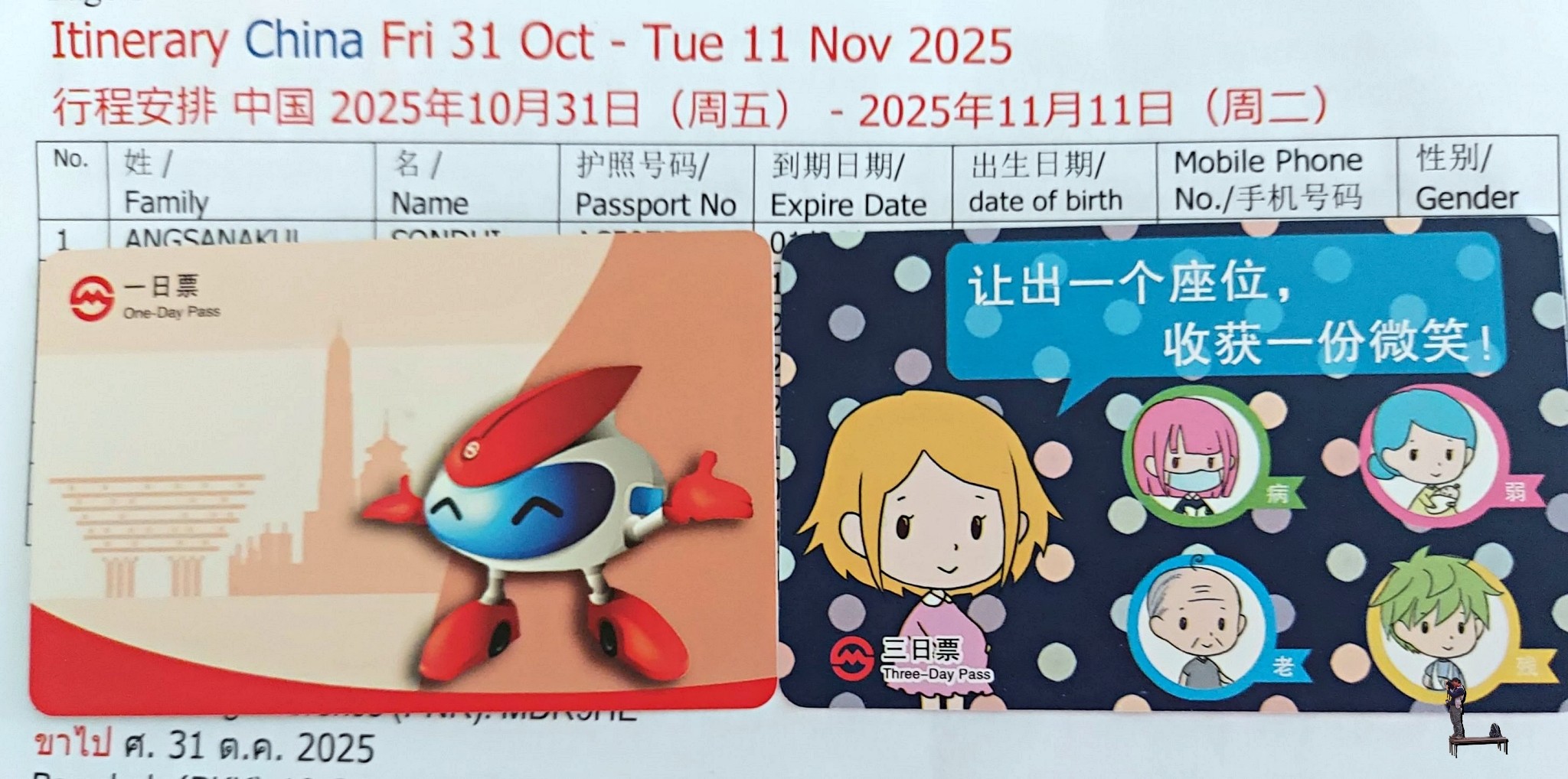 เราซื้อตัวรถไฟใต้ดินแบบหนึ่งวันกัน ใบที่ออกสีแดง ๆ ตอนที่เที่ยวย้อนกลับมาเซี่ยงไฮ้ เราซื้อตั๋วรถใต้ดินแบบ 3 วันกัน
