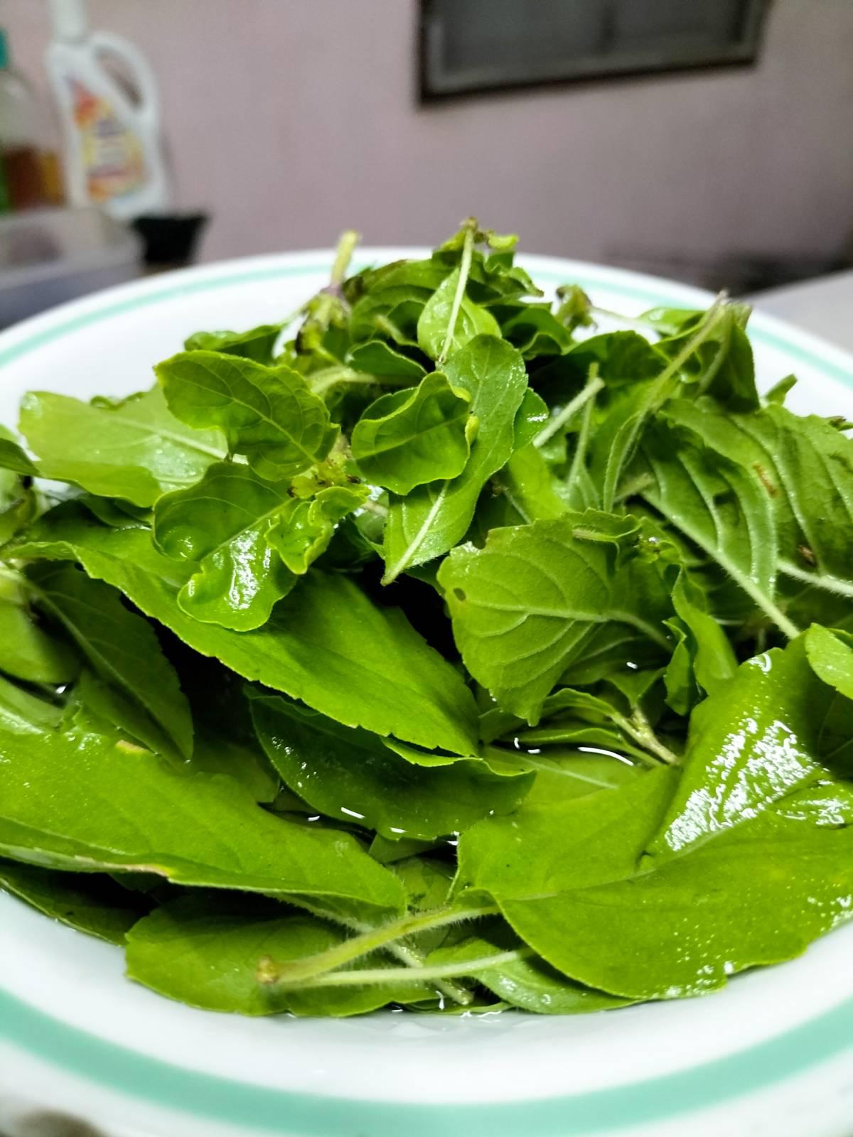ถั่วพลู แล้วชิมรสอีกครั้ง ให้ได้ตามชอบ จากนั้นโรยหน้าด้วยพริกชี้ฟ้าแดงซอย และใบกะเพราลงไป ปิดไฟ ตักเสิร์ฟได้
