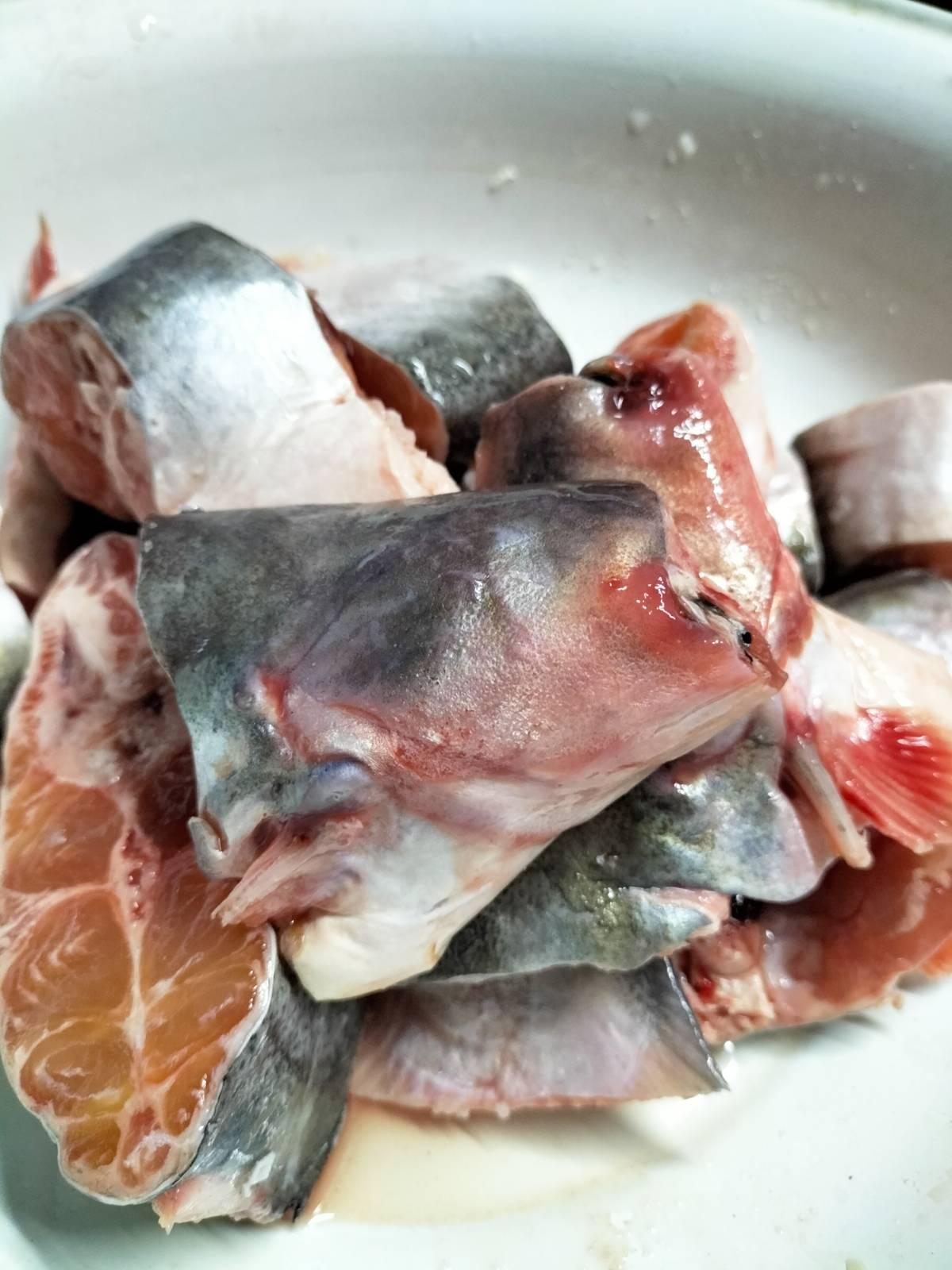1.ปลาหน้าหนู หั่นเป็นชิ้น ล้างให้สะอาด เคล้าเกลือไว้เล็กน้อย