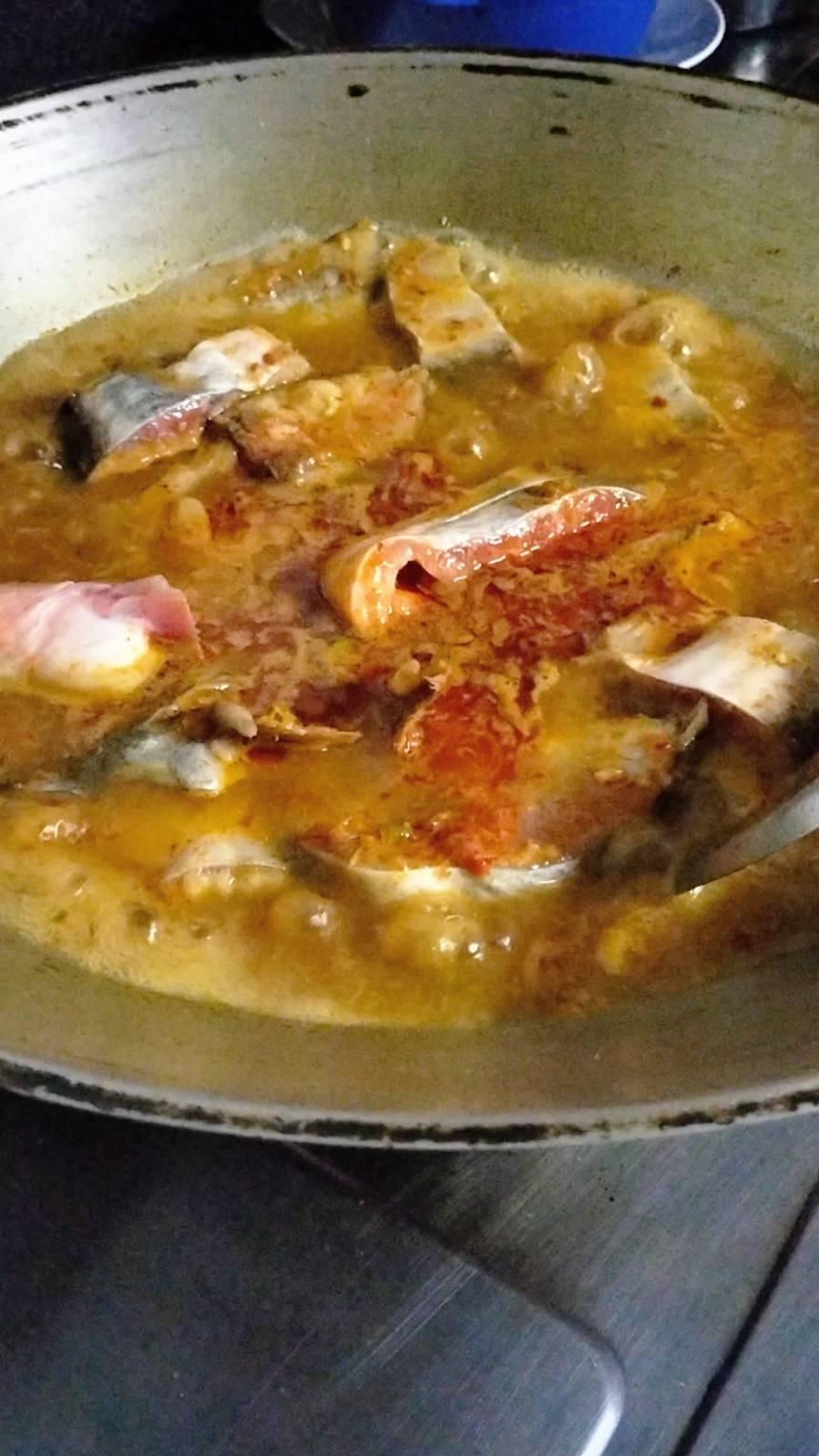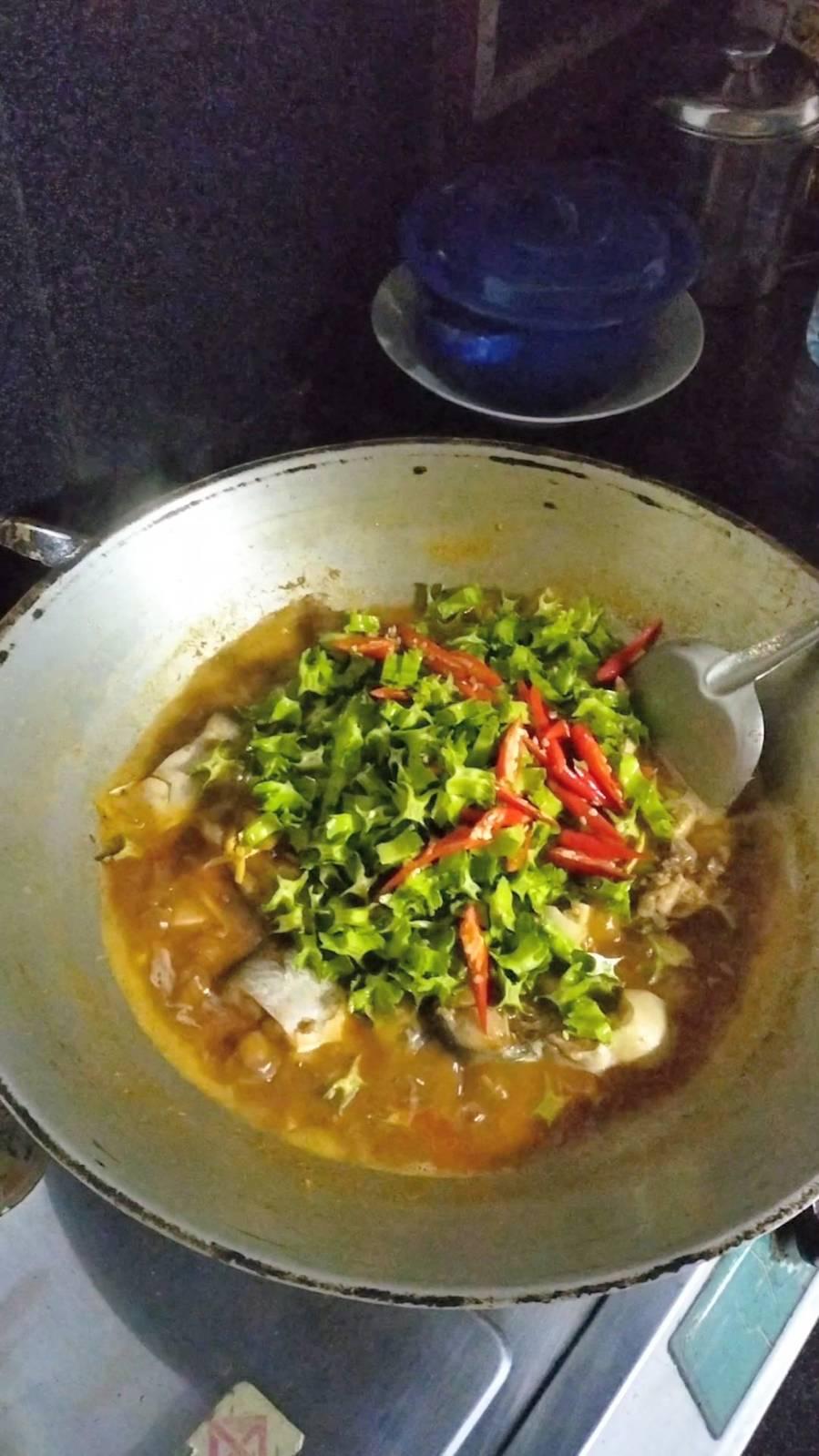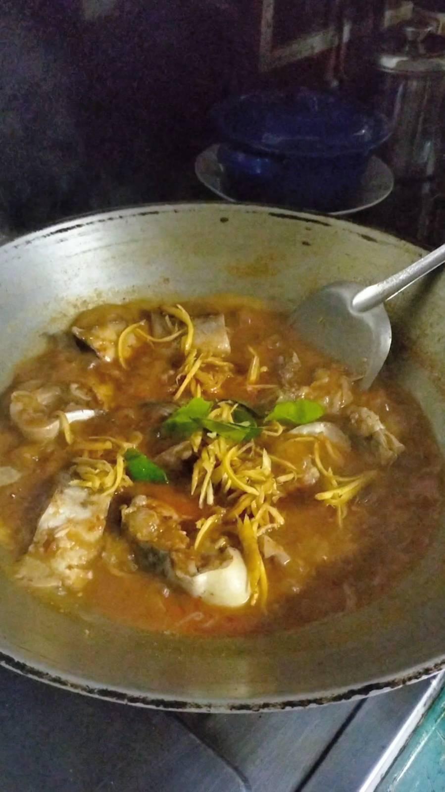 3.เมื่อน้ำแกงเดือดอีกครั้ง ปลาเริ่มสุก ใส่กระชาย ใบมะกรูด