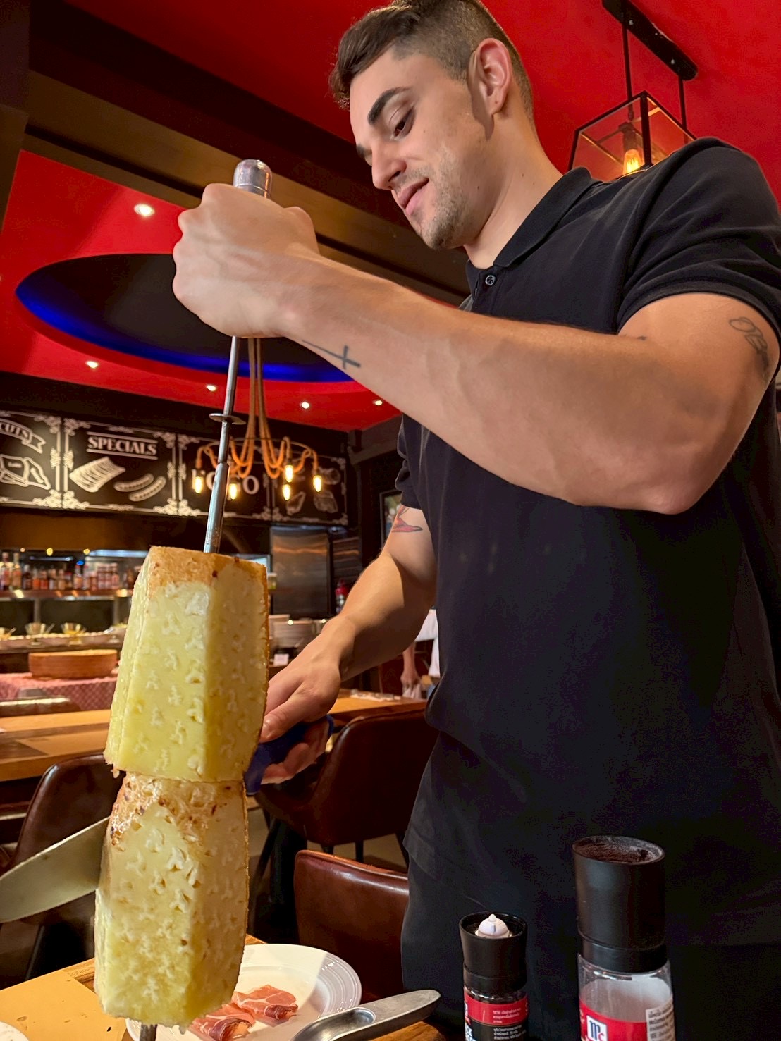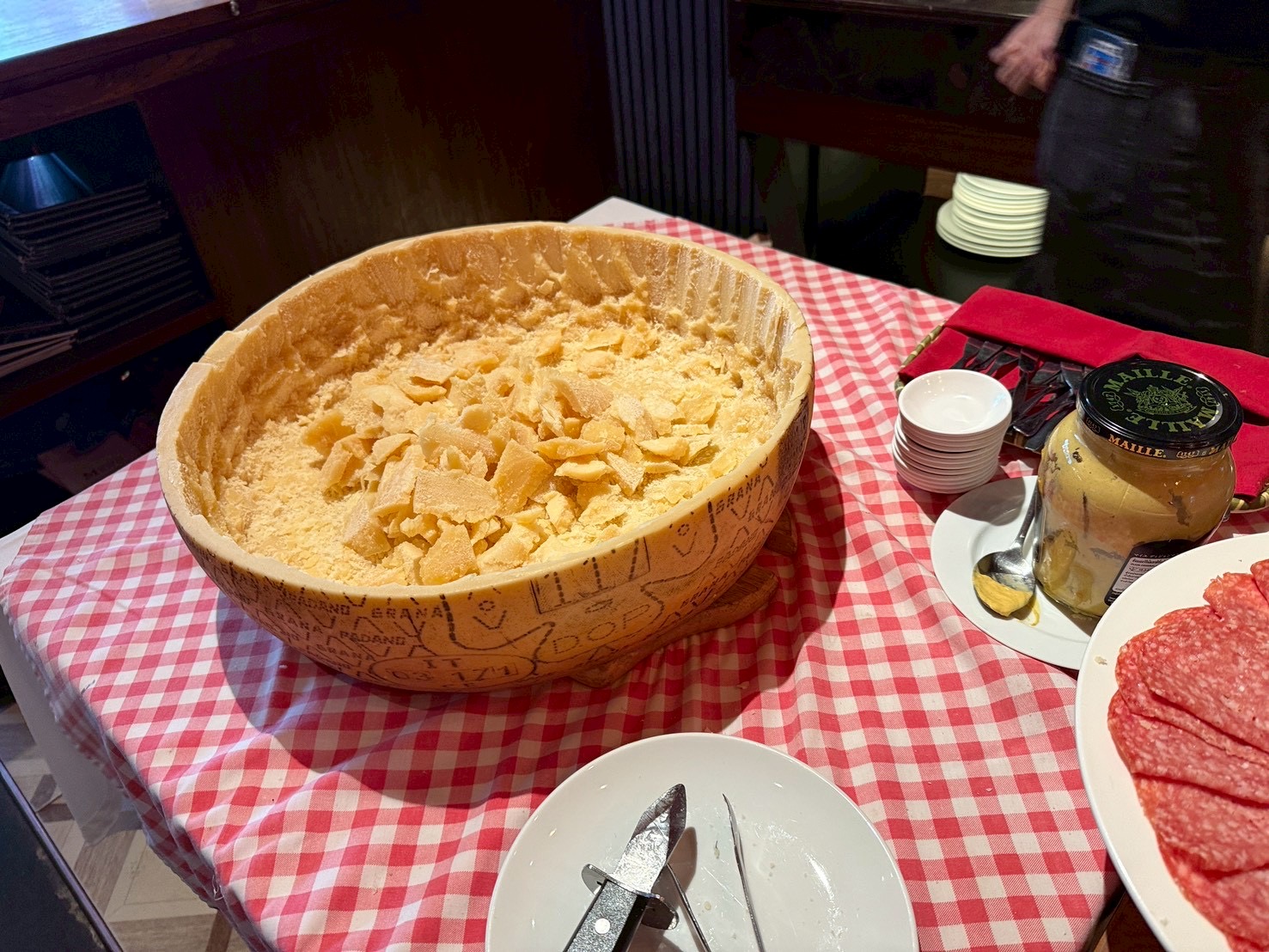 มี Parmigiano Reggiano (พาร์มิจาโน เรจจาโน่) หรือ Grana Padano ซึ่งเป็นชีสอิตาลี ก้อนยักษ์ ขูดไว้ให้ ตักทานคู่กับเนื้อย่าง หรือตักทานเป็นเกล็ดๆ เล่นๆหอมมัน
