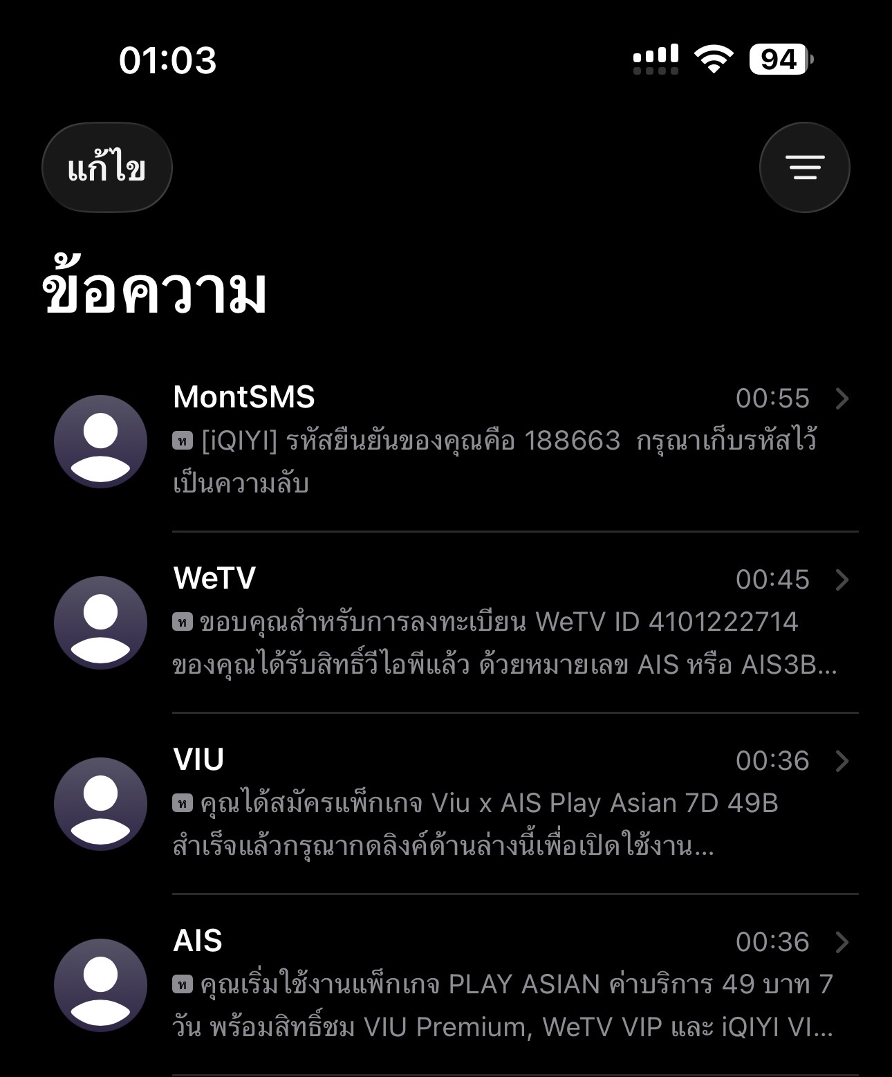 ซื้อ PLAY ASIAN Yearly Package ซึ่งใน App my AIS ระบุว่า เริ่มต้น12 มิ.ย. 2568 วันสิ้นสุด 11 มิ.ย. 2569 ตอนซื้อ package ดังกล่าวได้ทำการสมัคร VIU IQIYI WeTV ตามที่เวปไซต์ AIS แนะนำ จนได้รับ SMS แจ้ง