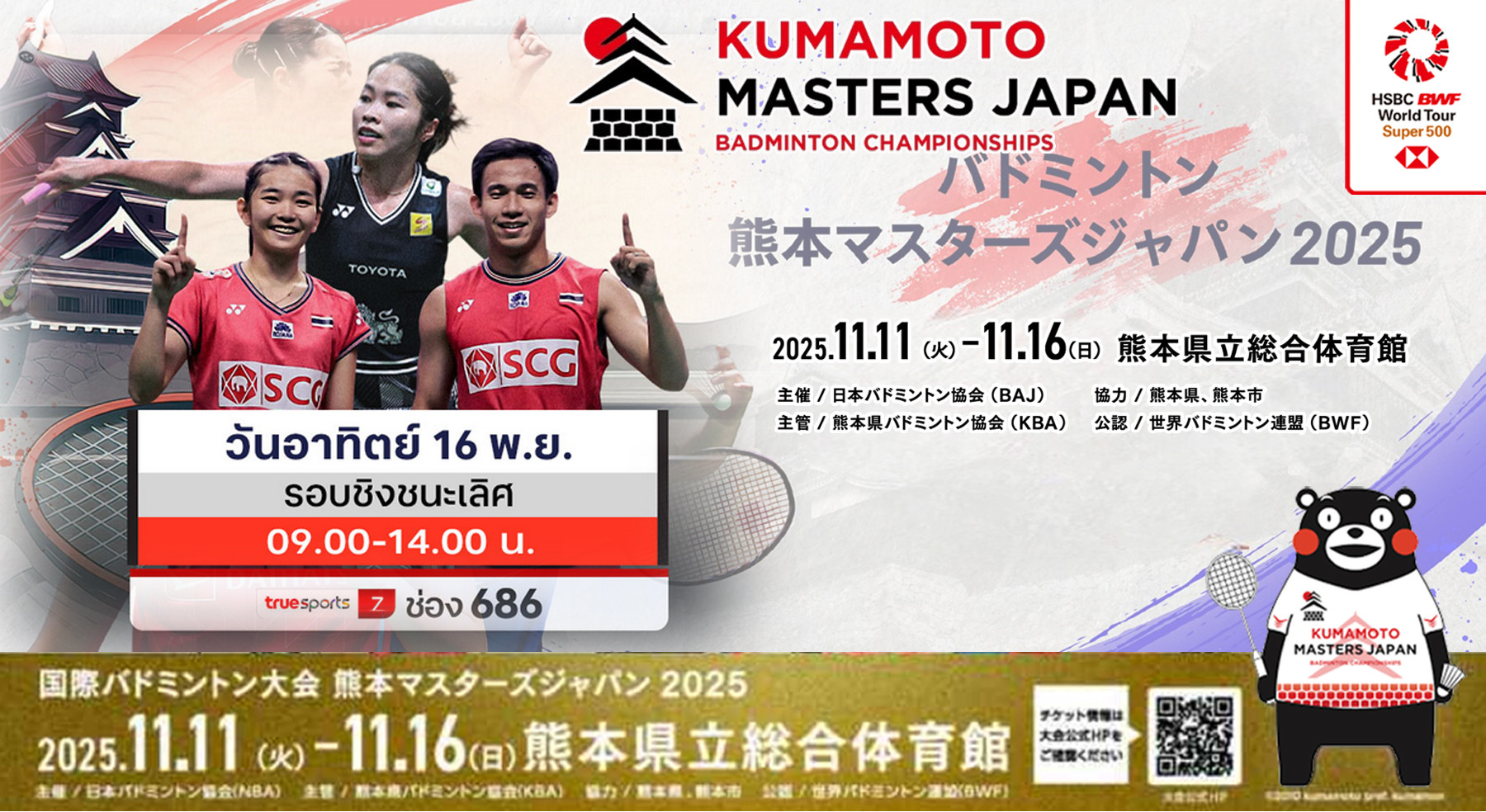 เชียร์สด ! แบดมินตัน Kumamoto Masters Japan 2025 : รอบชิงชนะเลิศ (16 พ.ย. 68) (คู่แรก 9.00 น.)
