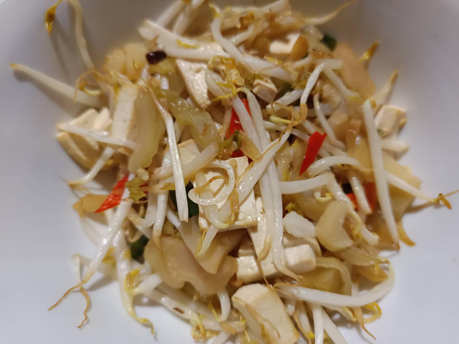 ผัดถั่วงอกกับเต้าหู้เห็ดหอมก่อน ตามสูตรผัดเต้าหู้ที่เคยทำ