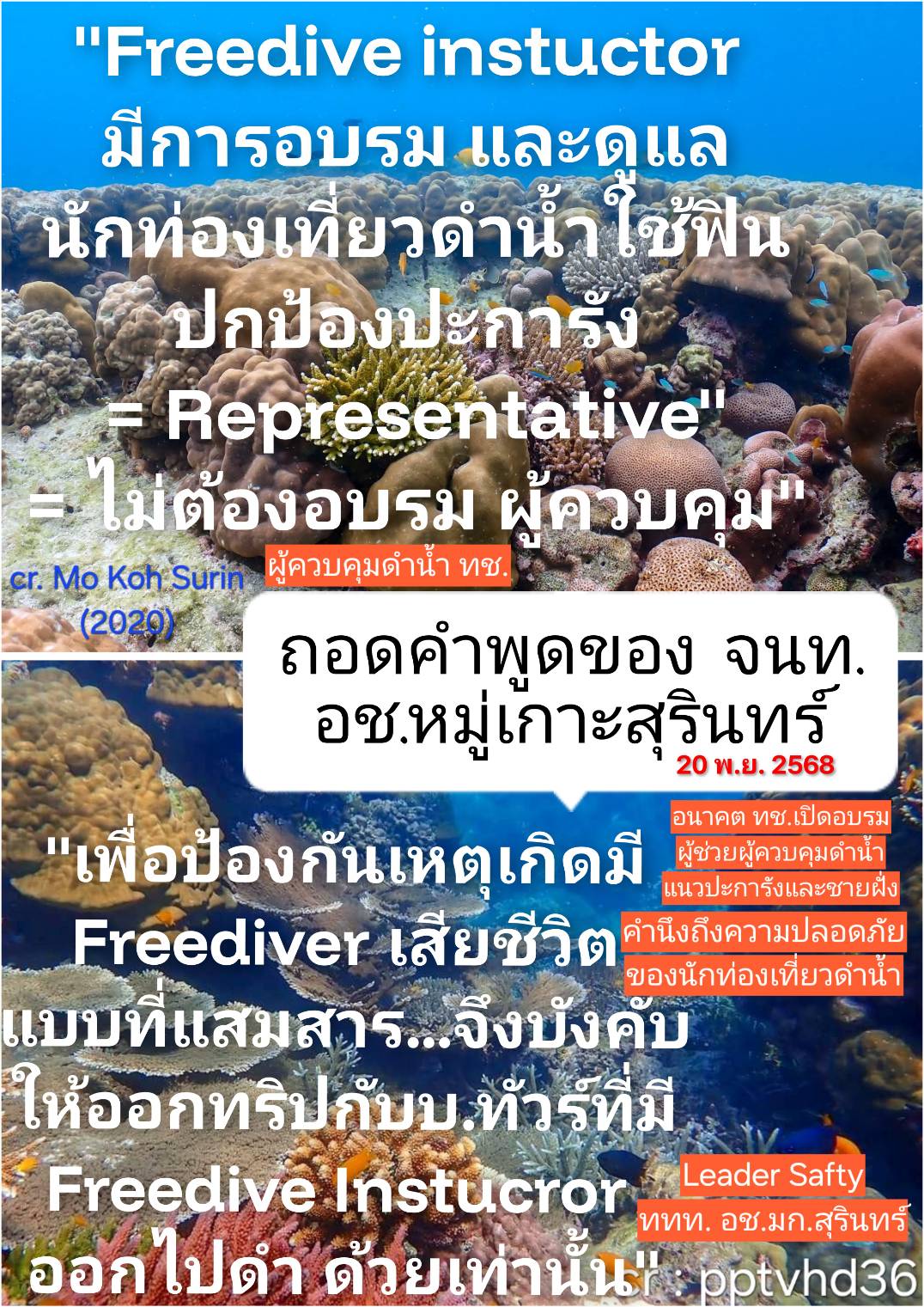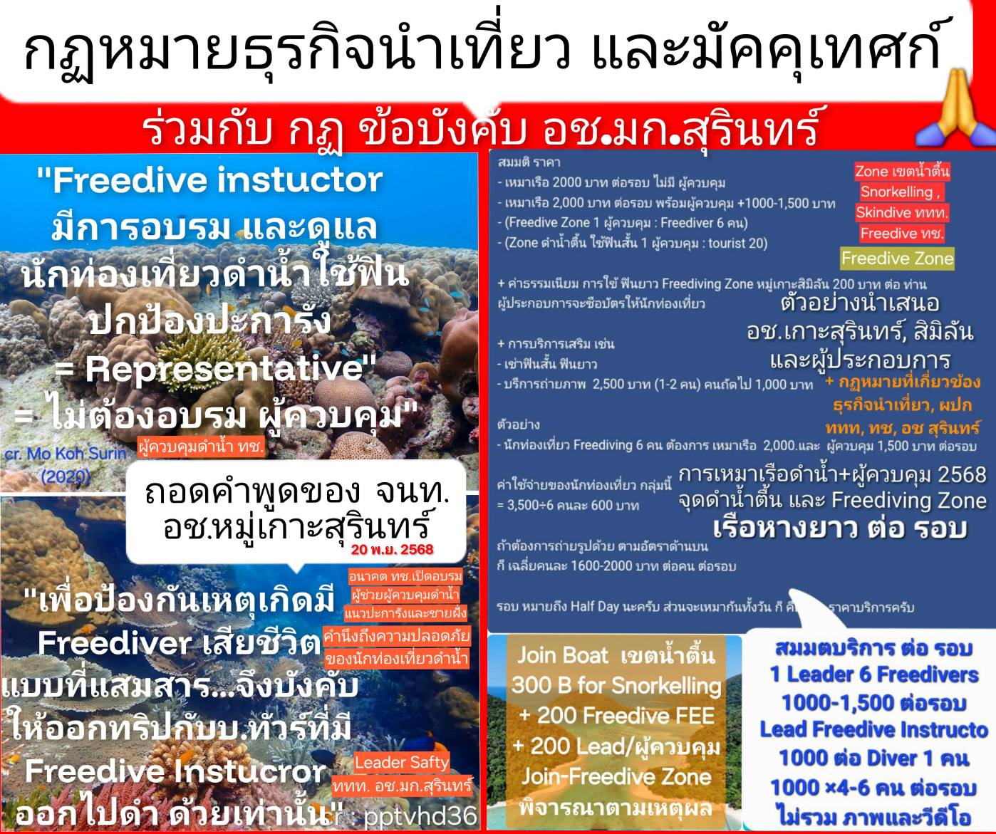 แต่ ผู้ควบคุม ในอช.สุรินทร์ หมายถึง Freedive Instuctor เท่านั้น