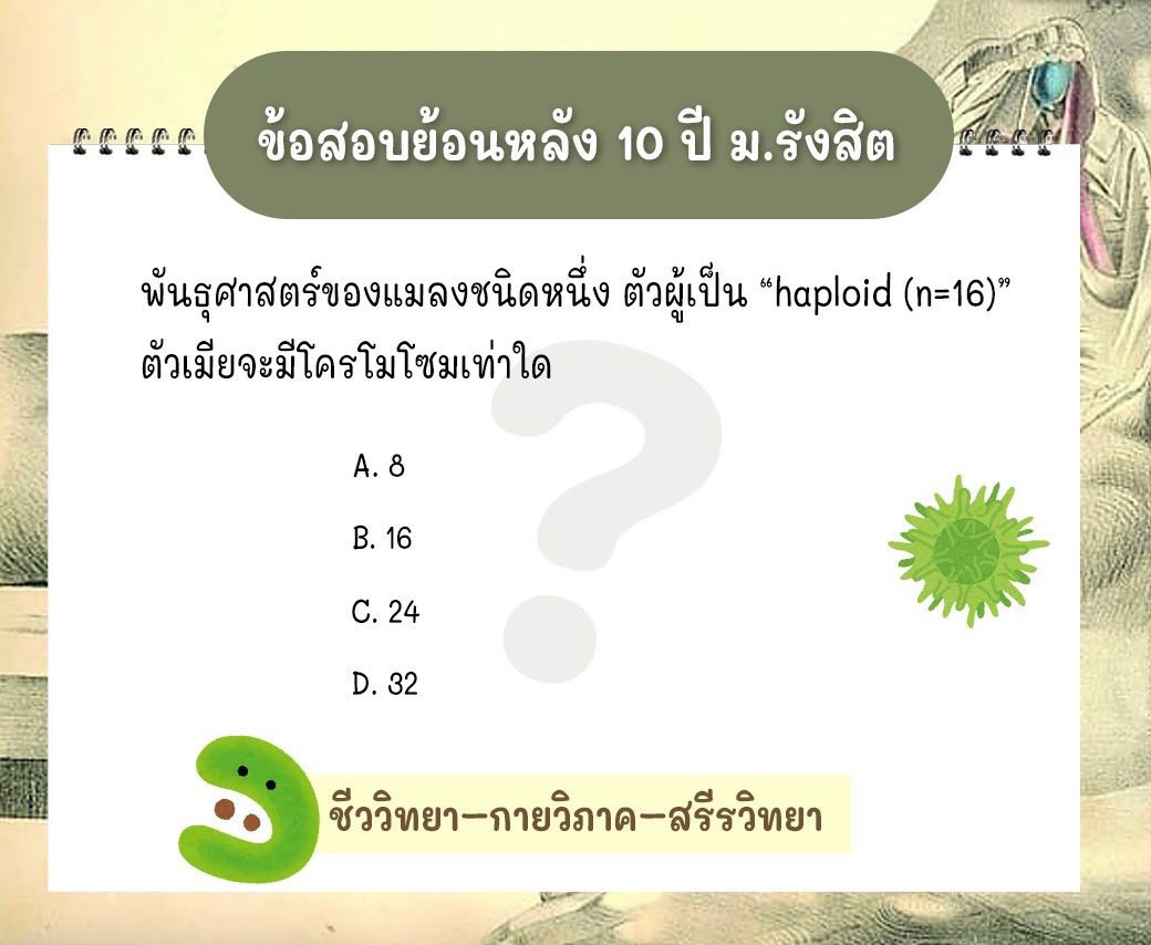 สรุปแนวข้อสอบแพทย์ ม.รังสิต พร้อมเฉลยย้อนหลัง 10 ปี วิชาชีวะ