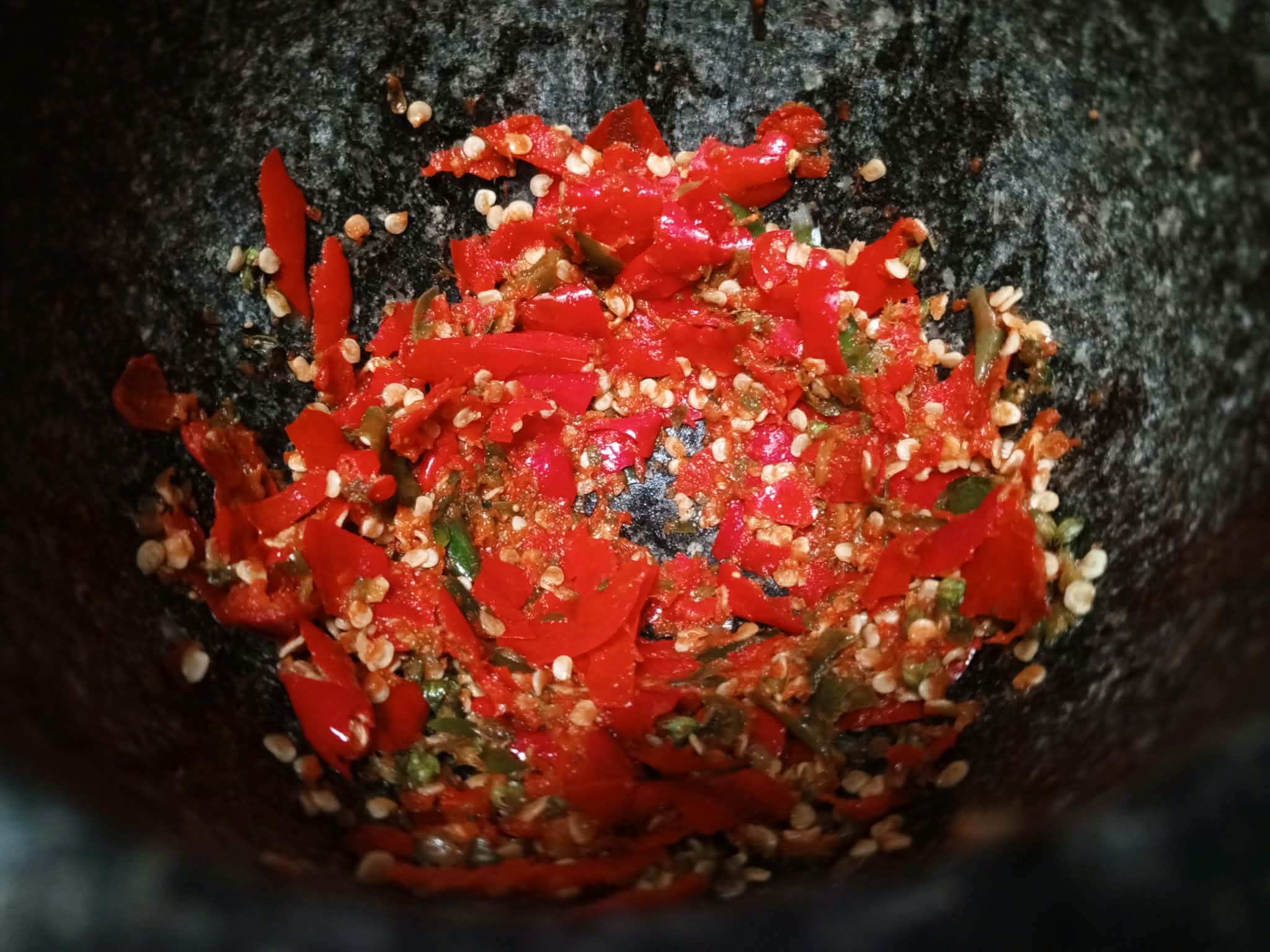 (ส่วนตัวใช้น้ำล้างครกที่ตำพริกและกระเทียม)
