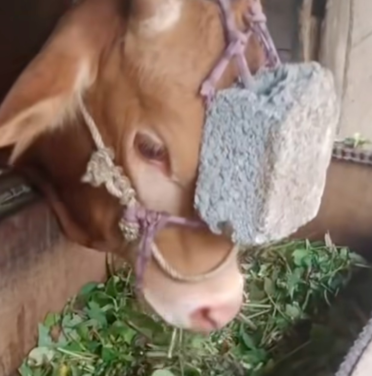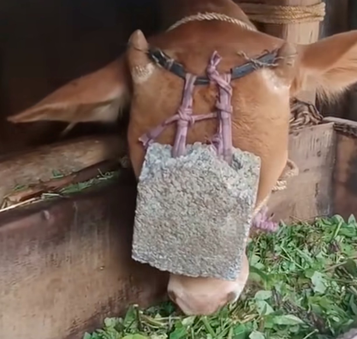 การนำหินไปผูกติดไว้ที่ด้านบนหัวของวัว ห้อยลงมาแบบนี้ ช่วยในเรื่องอะไรบ้างครับ