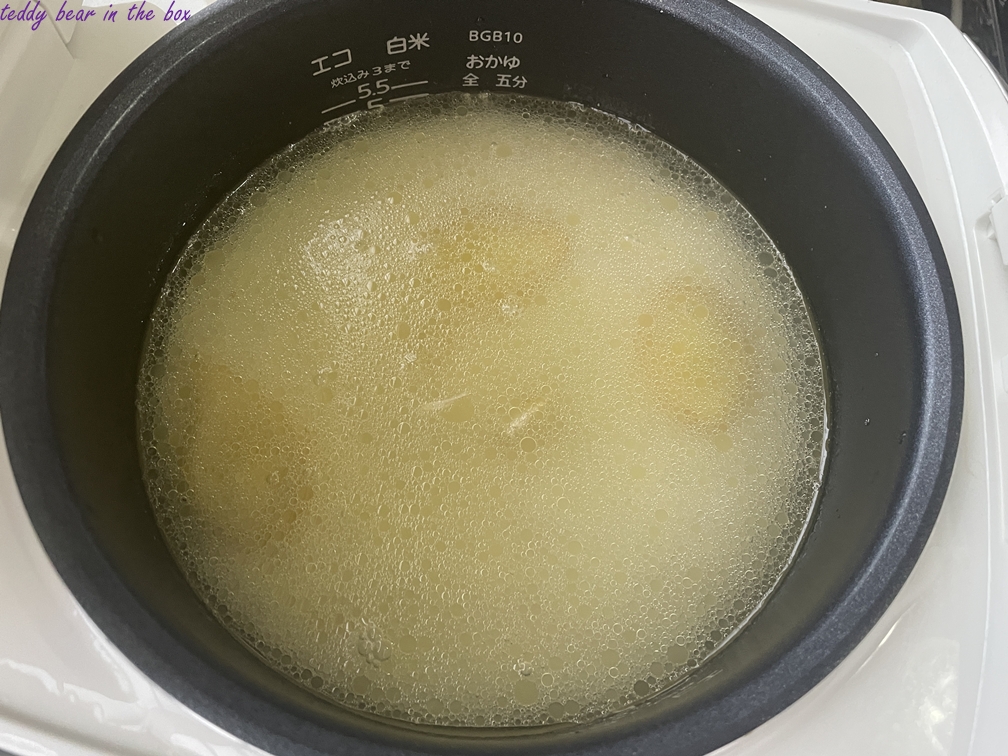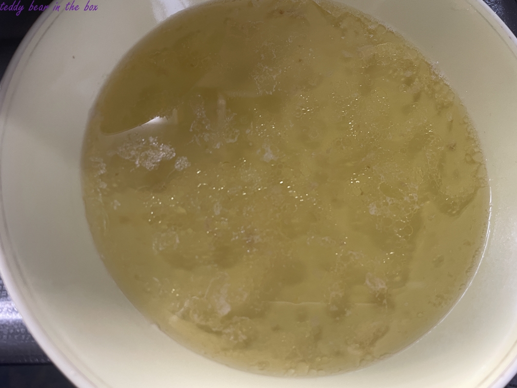 **น้ำต้มไก่จะมีรสเค็ม เลยใส่บางส่วนแล้วผสมน้ำดื่มเจือจาง