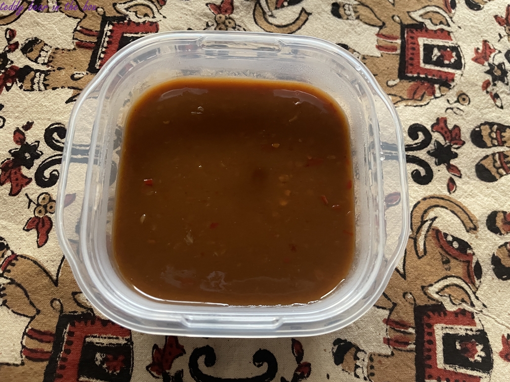 ส่วนน้ำจิ้มใช้แบบขวดสำเร็จรูปที่ซื้อมาจากเมืองไทย
