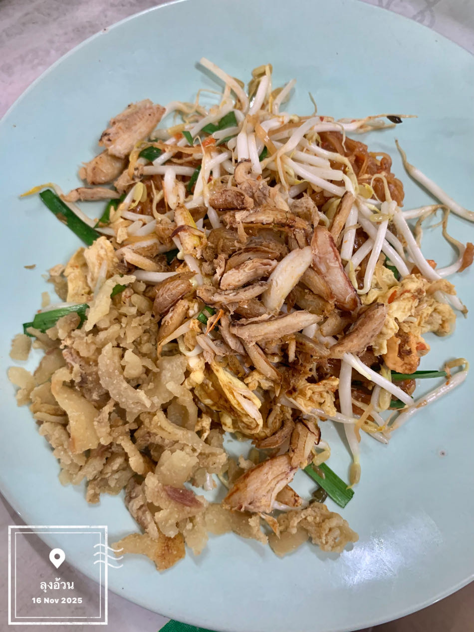 ผัดไทย ผัดแห้งดี ไม่มัน มีกากหมู มีมะนาวสด ถั่วงอก ใบกุ่ยช่ายให้ หมูสะเต๊ะอร่อยมากนุ่ม น้ำจิ้มอร่อย