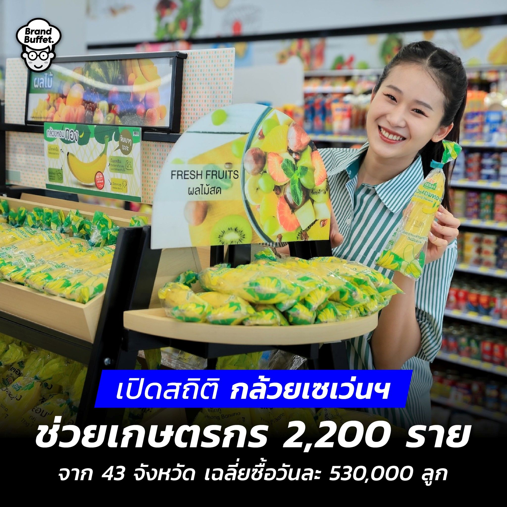 จากความตั้งใจของเซเว่น อีเลฟเว่น ที่ต้องการสร้างอาชีพสร้างรายได้ให้เกษตรกรไทย “กล้วยเซเว่น” ถือเป็นจุดเชื่อมระหว่างแรงปลูกของเกษตรกร กับความต้องการของตลาดสมัยใหม่ ปัจจุบัน เซเว่นฯ รับซื้อกล้วยสดจากเกษตรกรและเครือข่ายผู้รวบรวม กว่า 2,200 ราย จาก 43 จังหวัดทั่วประเทศ กล้วยเฉลี่ย 530,000 ลูกต่อวัน ผ่านความร่วมมือกับ SME ผู้รวบรวมผลผลิต ซึ่งทำหน้าที่คัดเลือก ควบคุมคุณภาพ และบรรจุกล้วยที่ผ่านมาตรฐานความสะอาด ปลอดภัย เพื่อส่งต่อสู่ผู้บริโภคผ่านร้านเซเว่นฯ ทั่วประเทศ