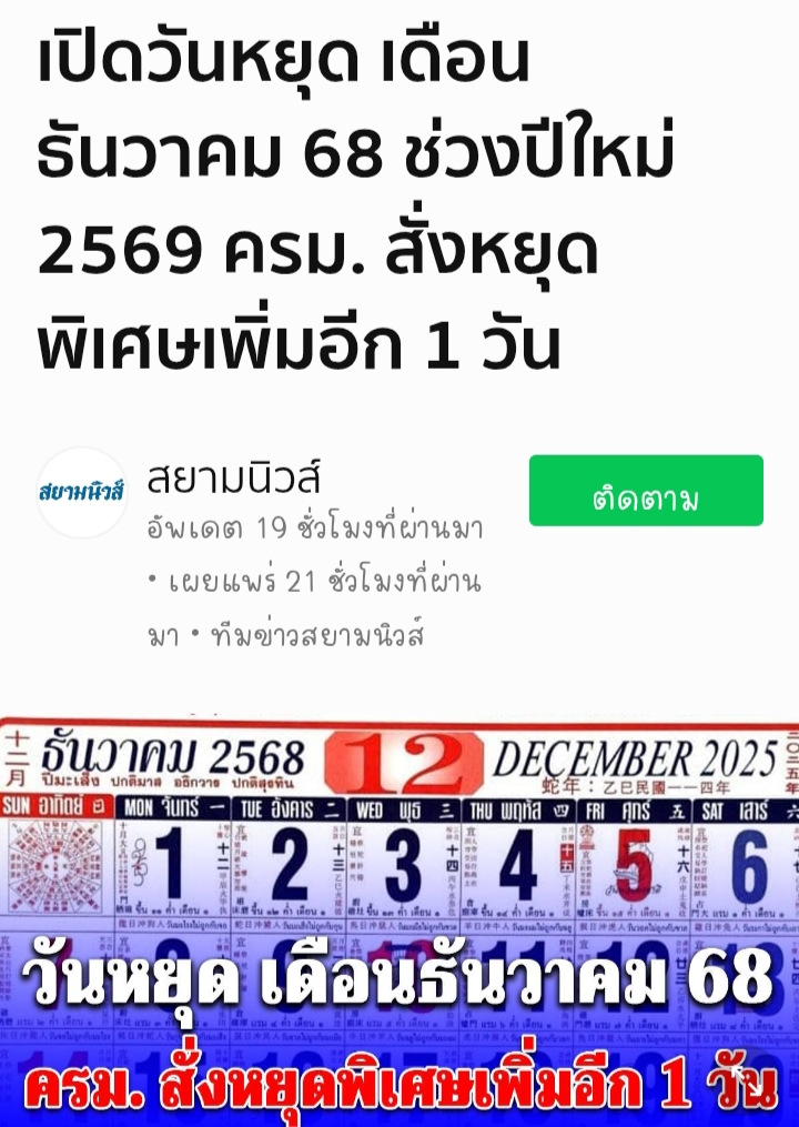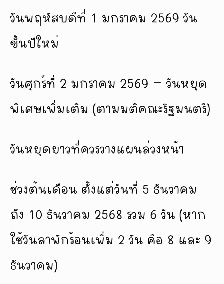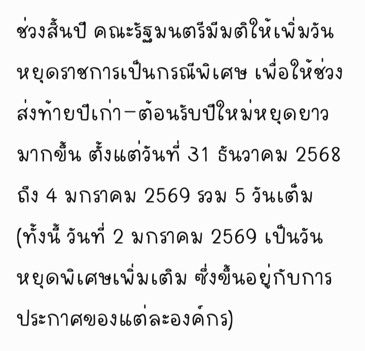 ข่าวดี!!! เพิ่มวันหยุดพิเศษช่วงปีใหม่เพิ่มอีก 1 วัน