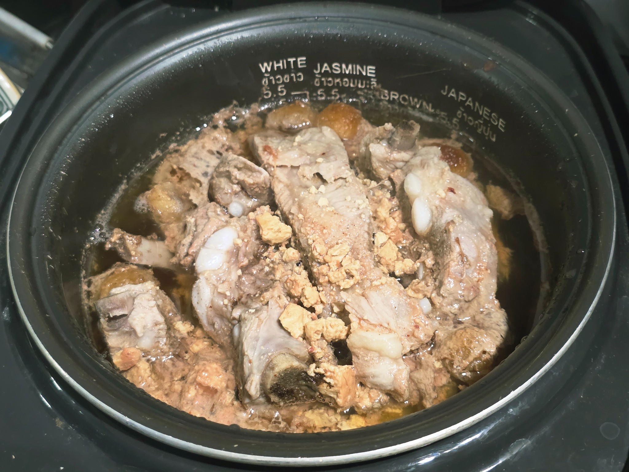 ครัวบ้านนาริมทุ่ง; "ซี่โครงหมูตุ๋นเต้าหู้ยี่แดง "🐷🧄🫚🌿ง่ายๆ ตุ๋นในหม้อหุงข้าว ✌️🤤😋😃😄😁 🍽👍น้ำหม่อน ปลูกเอง