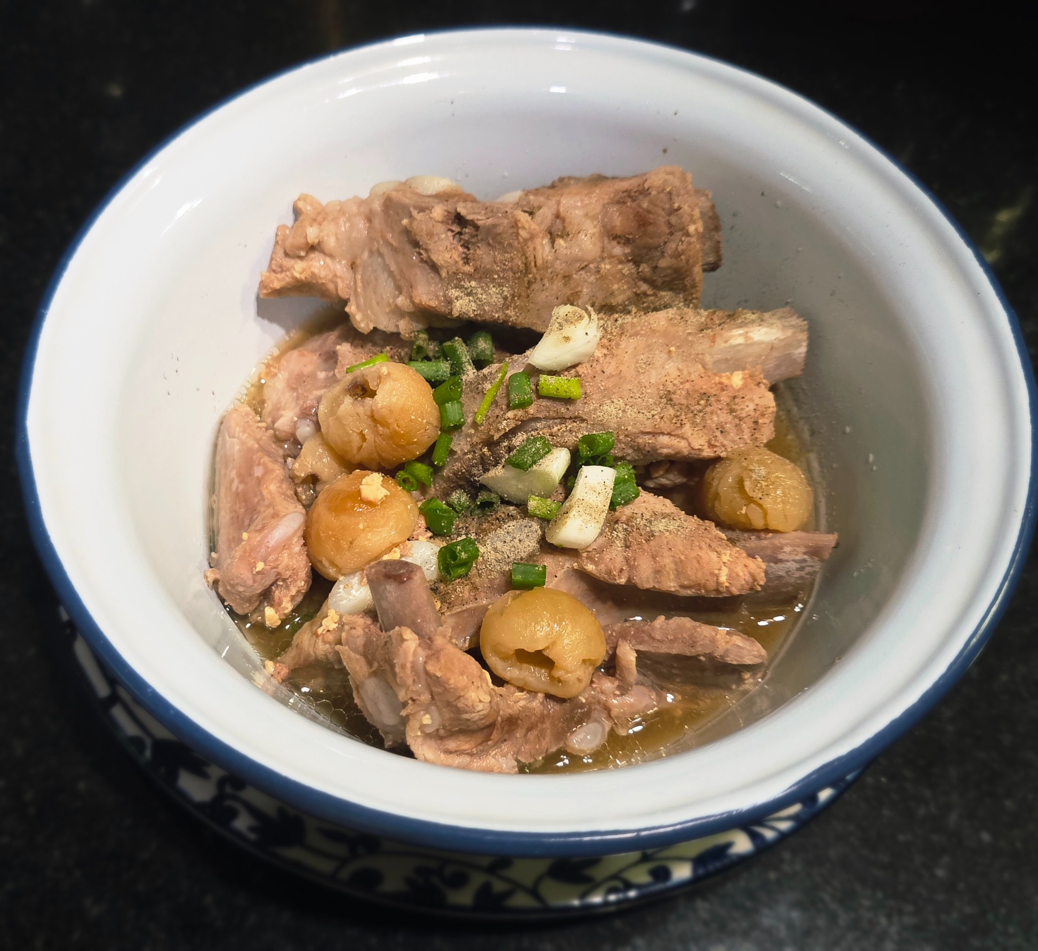 ไม่ต้องใส่น้ำตาลหรือซีอิ๊วหรือเหลืออะไรเลยครับ แต่ทำออกมา จะหวานอ่อนๆ จากซี่ดครงอ่อนและลำไย เค็มอ่อนๆ จากต้าหู้ยี้