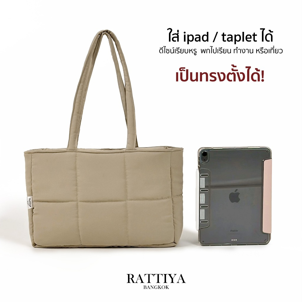 กระเป๋าใบนี้คือ กระเป๋าผ้านุ่มนิ่ม ใส่ iPad ที่ออกแบบมาให้ใช้งานได้ทุกวัน ทั้งไปเรียน ไปทำงาน หรือพกแท็บเล็ตไปนั่งทำงานคาเฟ่ ด้านในบุฟองน้ำรอบใบช่วยกันกระแทกอุปกรณ์ให้ปลอดภัย ขนาดประมาณ 35x25x9 ซม. ใส่ iPad Tablet และเอกสาร A4 ได้สบาย สายหิ้วยาวกำลังดีสะพายขึ้นไหล่แล้วไม่รู้สึกกดทับ น้ำหนักเบาแต่จุของจำเป็นได้ครบในใบเดียว 👜