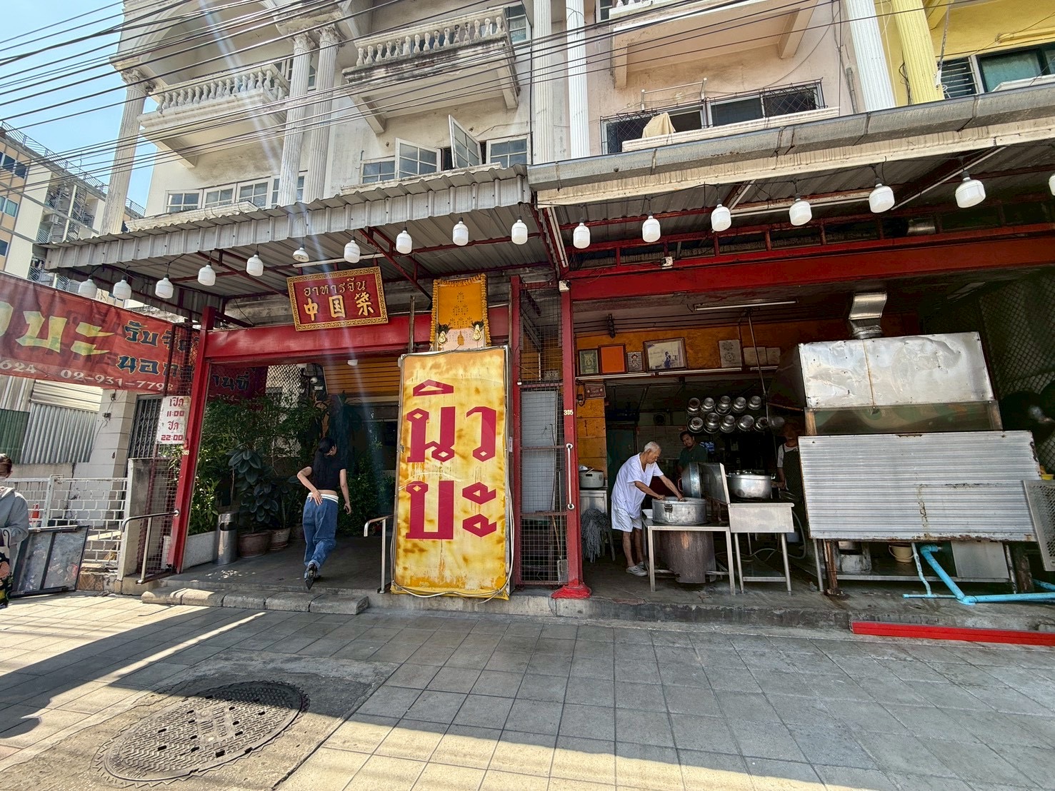 ไปถึงมื้อเที่ยงเป็นเก่า ร้านอยู่ริมถนน ค่อนข้างเงียบเลย มีโต๊ะก่อนหน้า โต๊ะเดียว