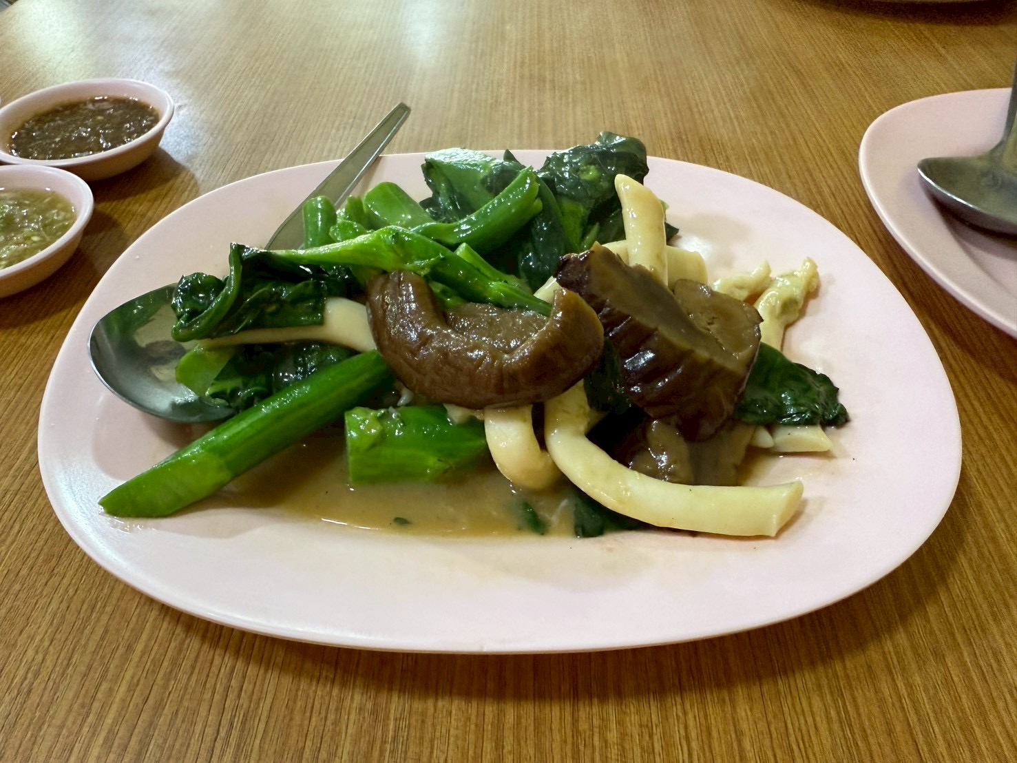 สั่ง คะน้าฮ่องกงเป๋าฮ้อเส้น(หน่อไม้ทะเล) 300฿จานนี้