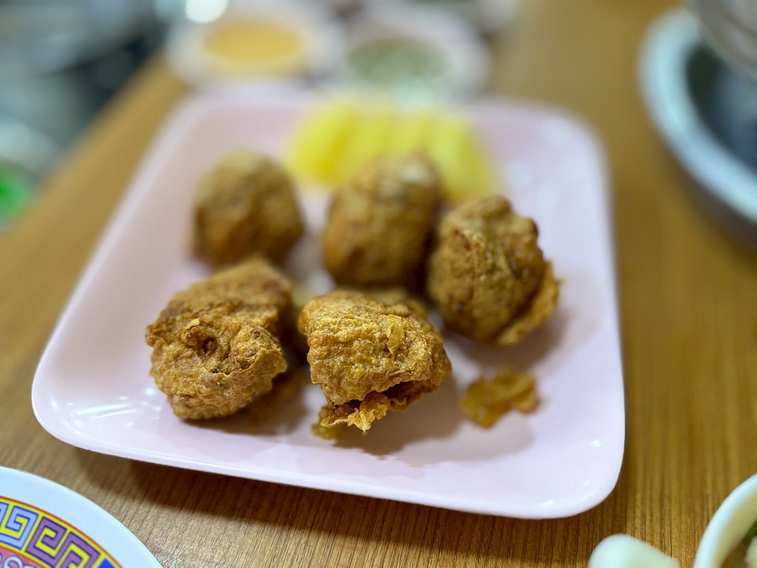 แต่พอกัดกิน เข้าใจเลย เรียก แฮจ๊อถูกแล้ว มันคือ Texture เดียวกับฮอยจ๊อที่ใช้เนื้อปู คือฟองเต้าหู้ข้างนอก กรอบ เนื้อกุ้งบดผสมแห้ว(และอาจจะมีมันหมูผสมบ้างเหมือนฮอยจ๊อ) แต่จะเด้งกว่าหน่อย และกลิ่น รส จะออกมาเป็นรสกุ้งแทน อร่อย เลยชอบ และลูกโต 5 ลูก ตกลูกลูกละ 30 บาท ถือว่าถูกเลย กินกับสัปปะรดตัดเลี่ยน อร่อยชอบๆๆๆ