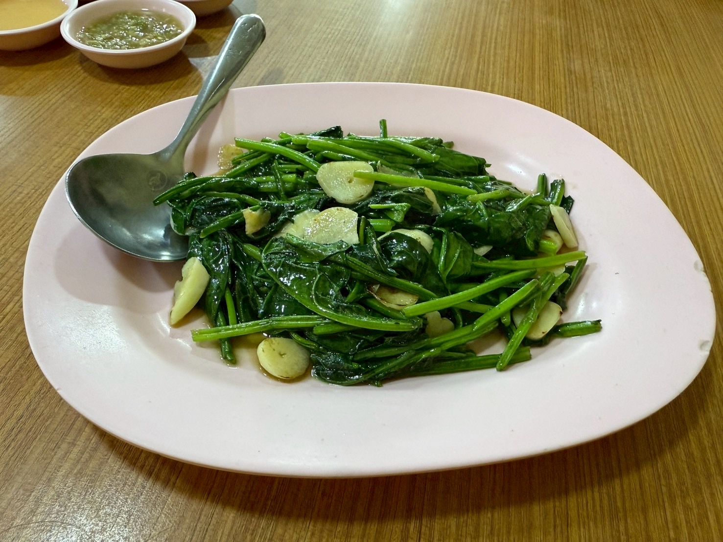 จาน3 ป๋วยเล้งผัดกระเทียมสด 100฿
