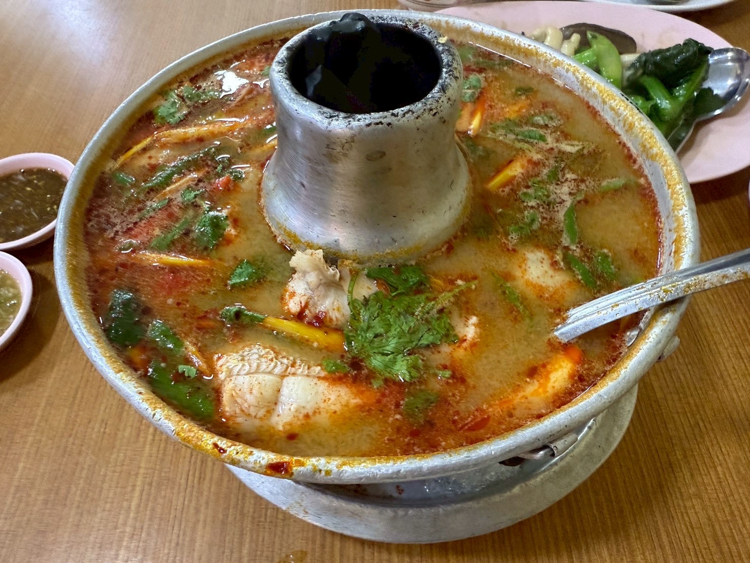 มาเป็นแบบต้มยำพริกเผาซึ่งส่วนตัว ปลาเก๋าน่าจะเป็นน้ำใสหอมพริกขี้หนูสด