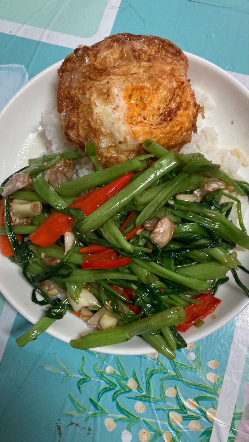 สวัสดีค่ะ คิดถึงทุกคนนร้ๅๅๅ ไม่ได้หายไปไหน อยู่ในใจเสมอ (อิอิ) วันนี้หาทำอะไรทานง่ายๆกันค่ะ ผัดผักบุ้งราดข้าว แถมไข่ดาวเกรียมๆสักฟอง กับข้าวง่ายๆ แต่อร่อยดี มีประโยชน์ เหมือนเดิมไม่เคยเปลี่ยน ใครคิดไม่ออกไม่รู้จะทานอะไรดี ก็เอาไว้เผื่อเป็นเมนูตัวเลือกได้นร้าา