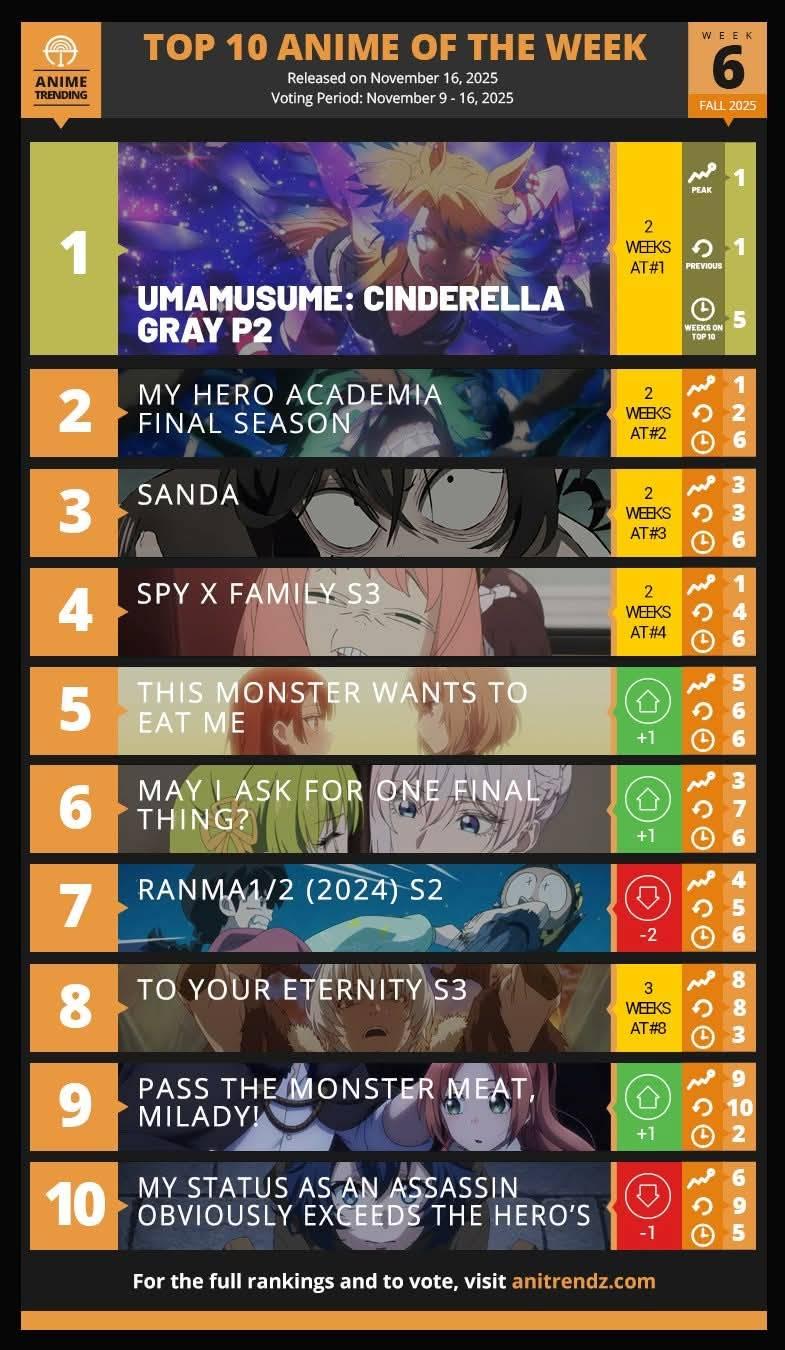 TOP 10 ANIME of the week 6 for 🍂 fall🍁2025