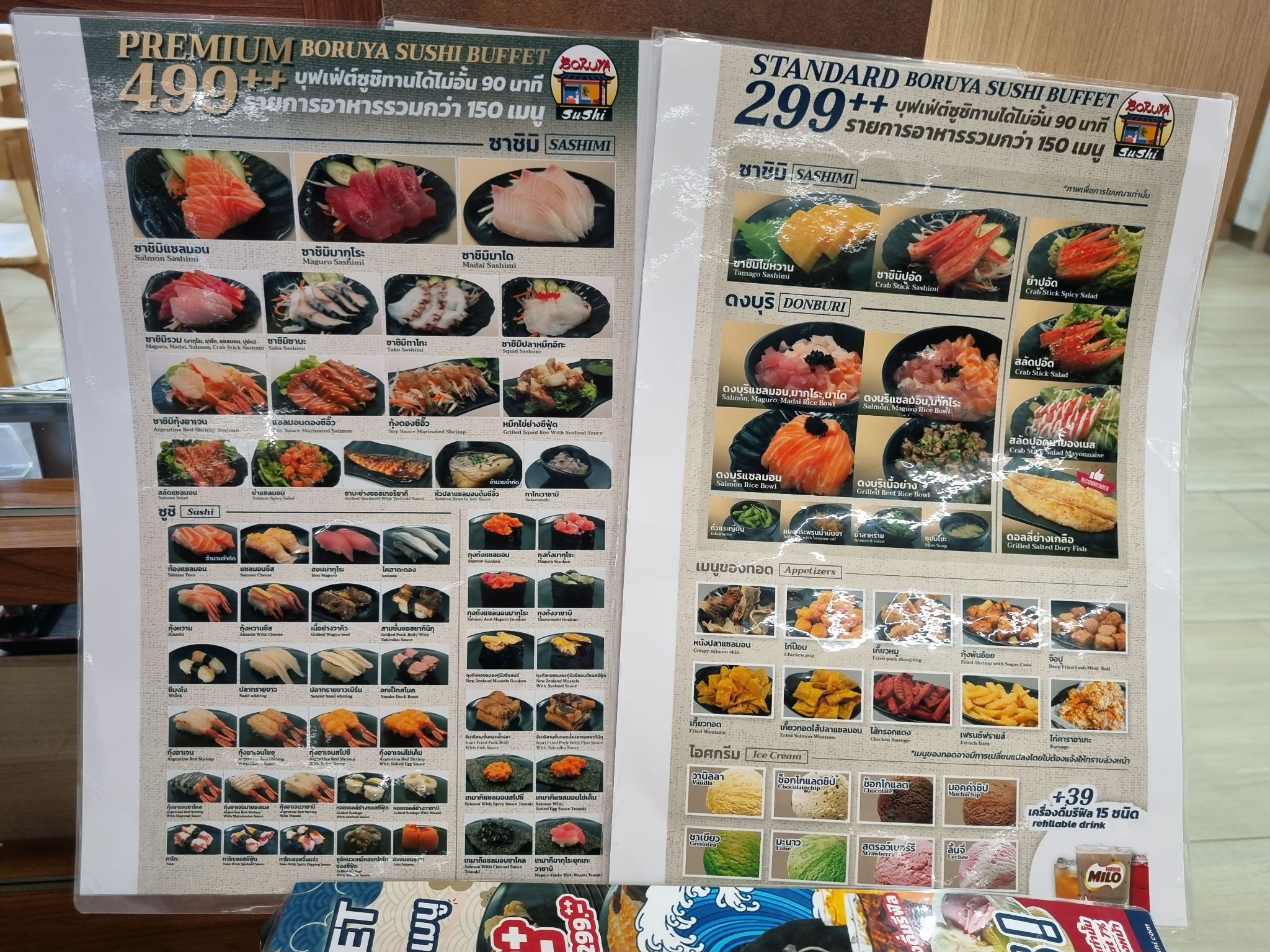 โปรบุฟเฟ่ต์มีการปรับเปลี่ยนไปจากช่วงเปิดร้านใหม่ๆเล็กน้อย ซึ่ง ณ ปัจจุบันก็มีหน้าตาประมาณนี้ ผมมากินตัว 499++ ซึ่งพอบวกค่านู่นนี่นั่นเสร็จ