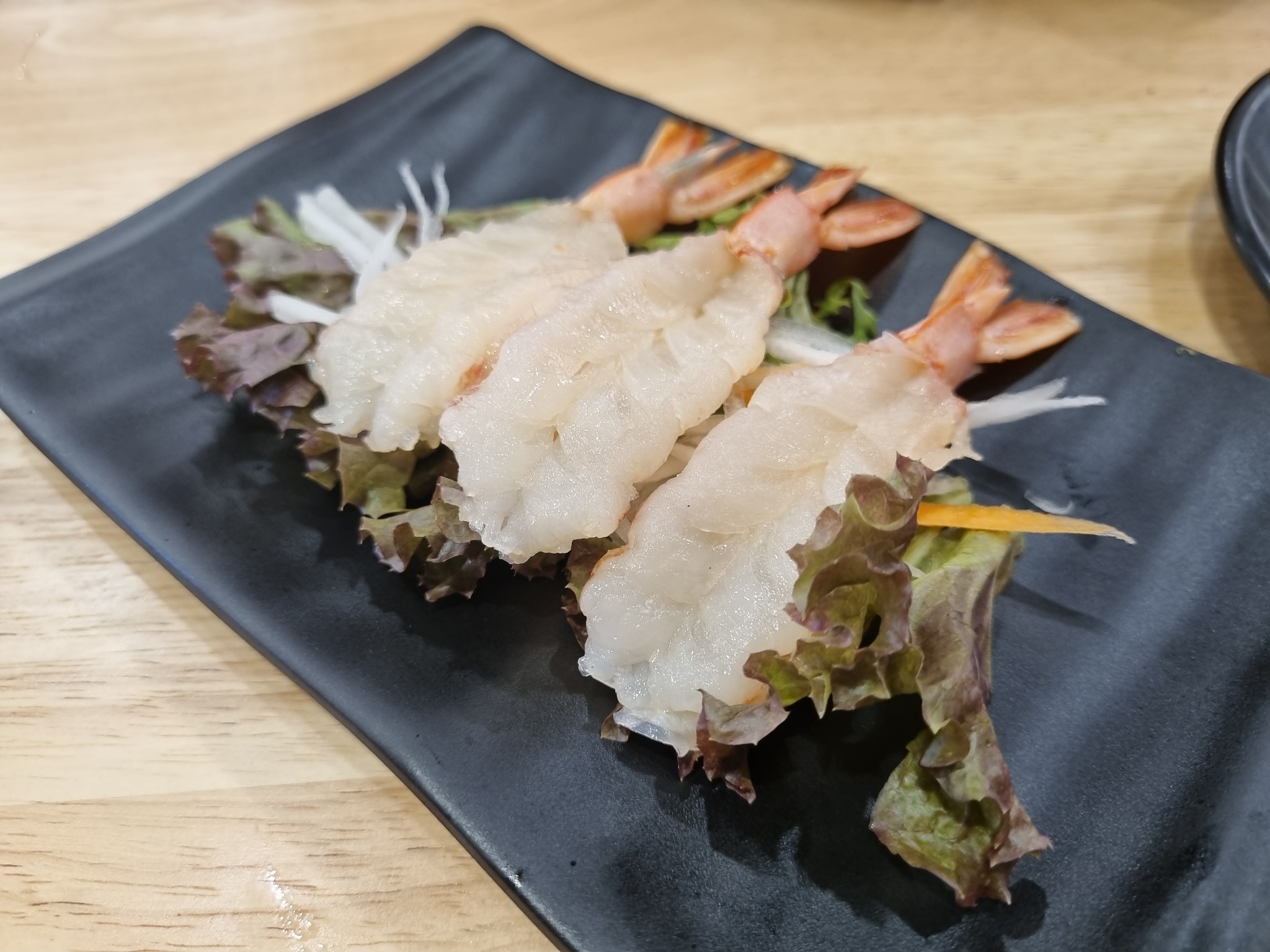 ของดิบประเดิมด้วย กุ้งอากะ เนื้อกรอบแก้ว แต่เหมือนจะเอาไปต้มหน่อยๆเพราะมีความสาก กลิ่นกุ้งยังเข้มดีอยู่