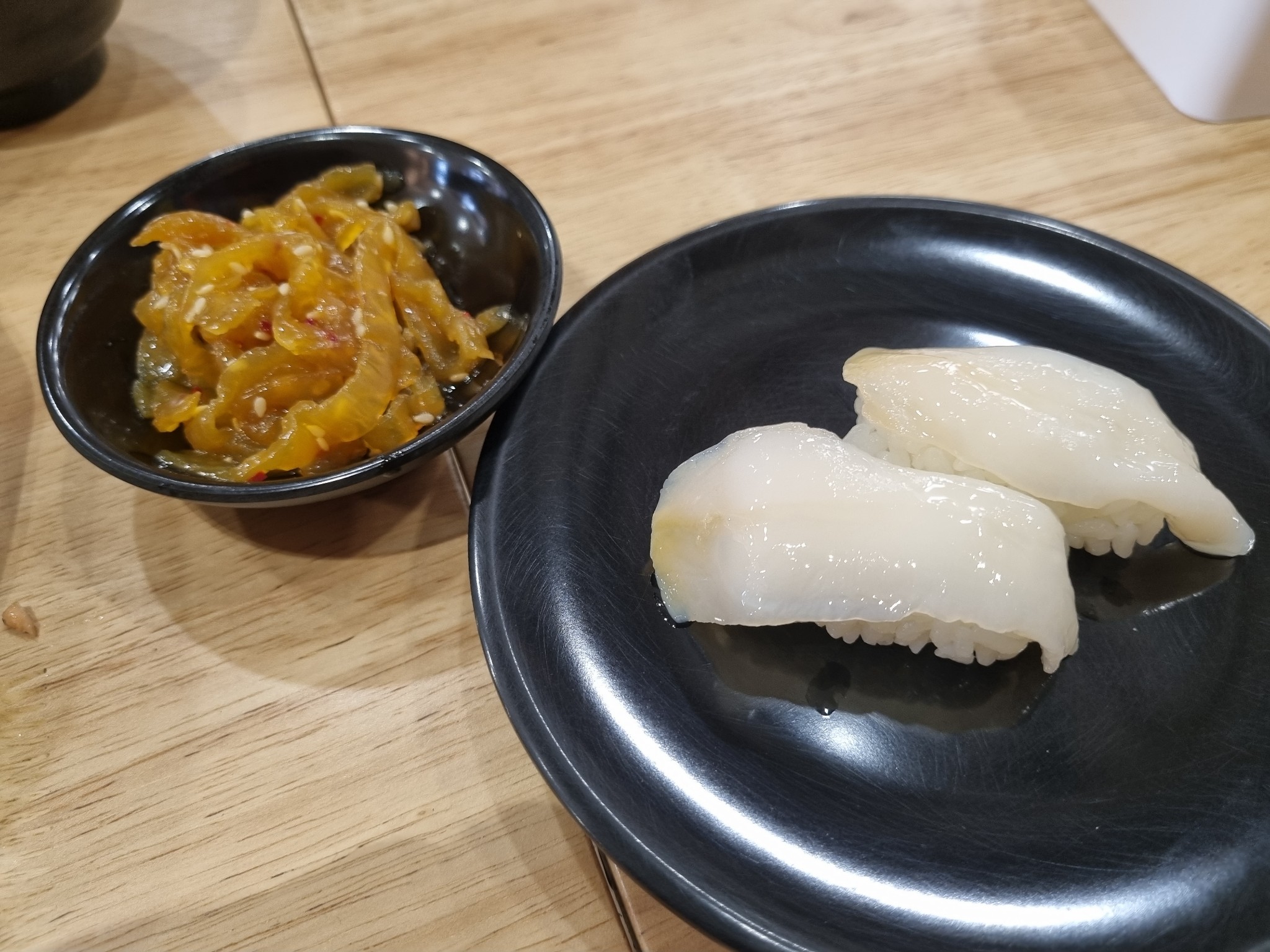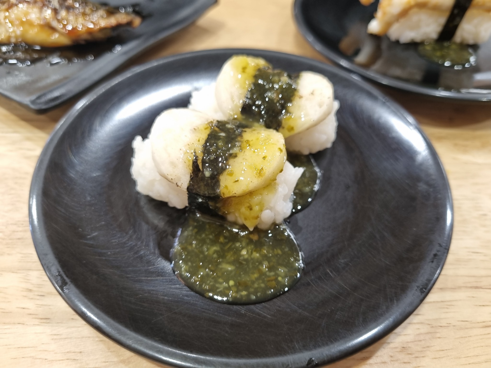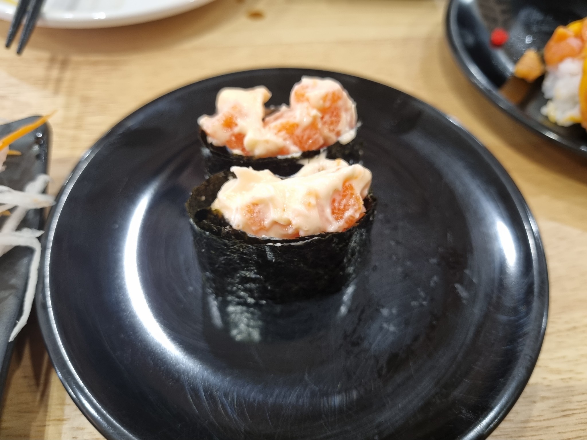 โทบิโกะดำ รสคล้ายไข่แมงดา แต่ดันใส่ซอสชาโคลแปะไว้ด้านล่าง ซึ่งแน่นอน หวานอีกแล้ว เพลียกับการใช้ซอสที่นี่มาก จะติดหวานไปไหนนนน