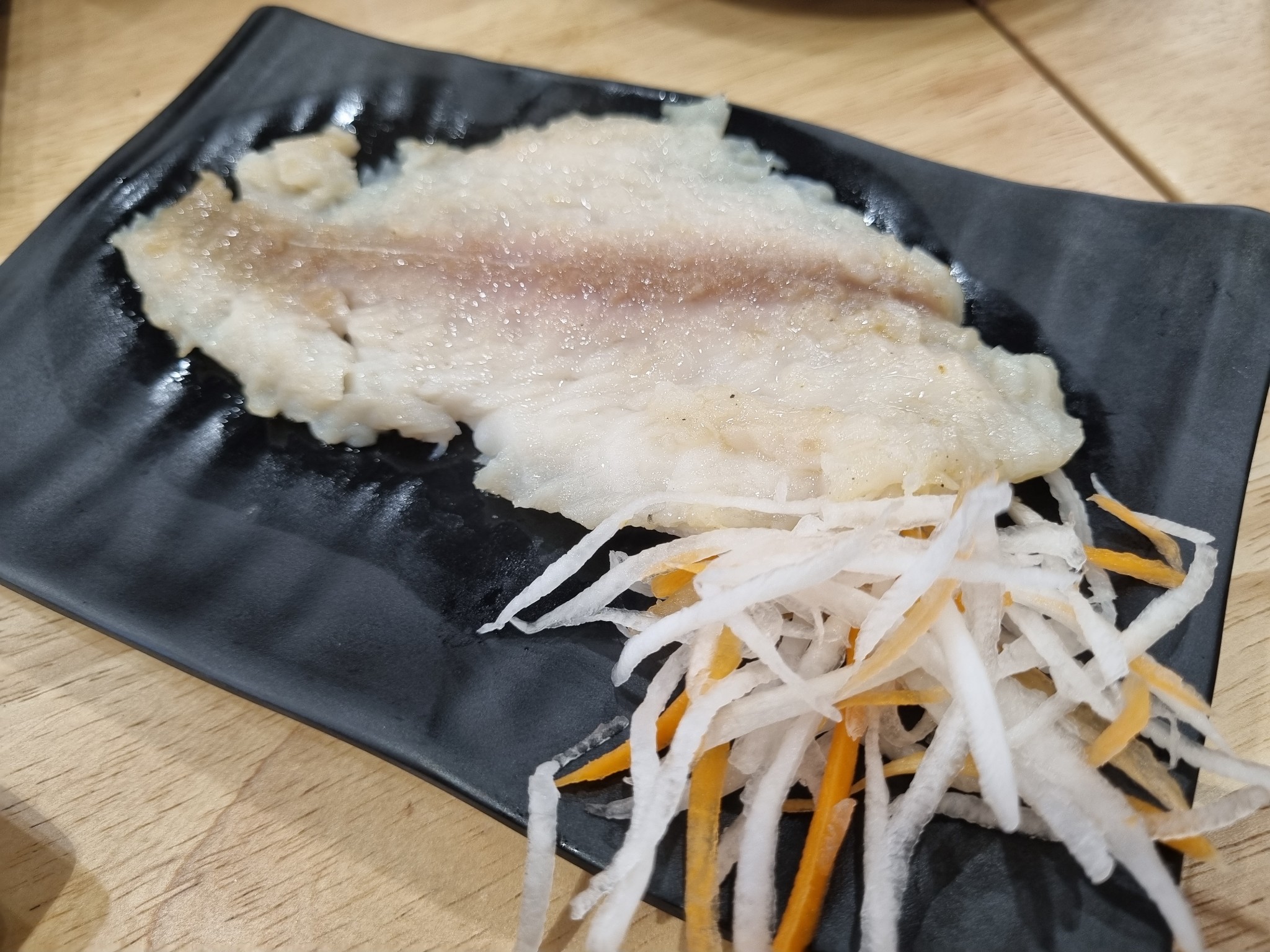 ปลาดอลลี่ย่าง เนื้อจืด ยุ่ยเละ และมีกลิ่นสาบหน่อยๆด้วย ค่อนข้างเเย่เลยครับอันนี้