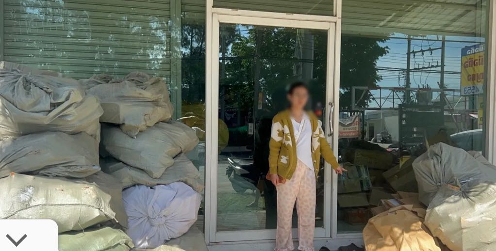 ด้านนอกห้องเช่ายังมีถุงกระสอบขนาดใหญ่ ภายในมีกล่องกระดาษบรรจุอยู่วางเรียงรายเป็นจำนวนมาก