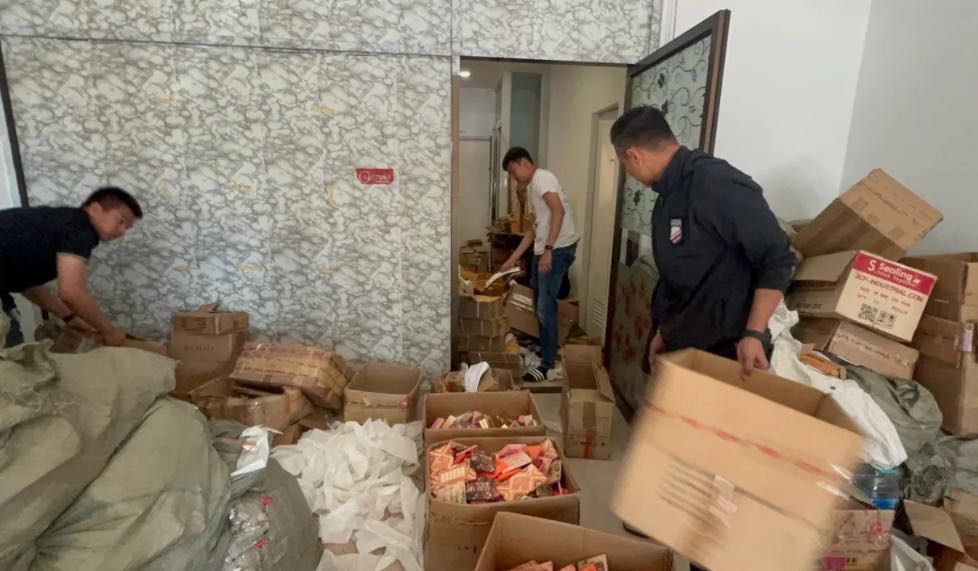 โดยมีผู้ต้องสงสัยที่เป็นหญิงสาว และคนงานจำนวนหนึ่งกำลังก้มหน้าก้มตาแพ็กสิ่งของใส่กล่องกระดาษอยู่