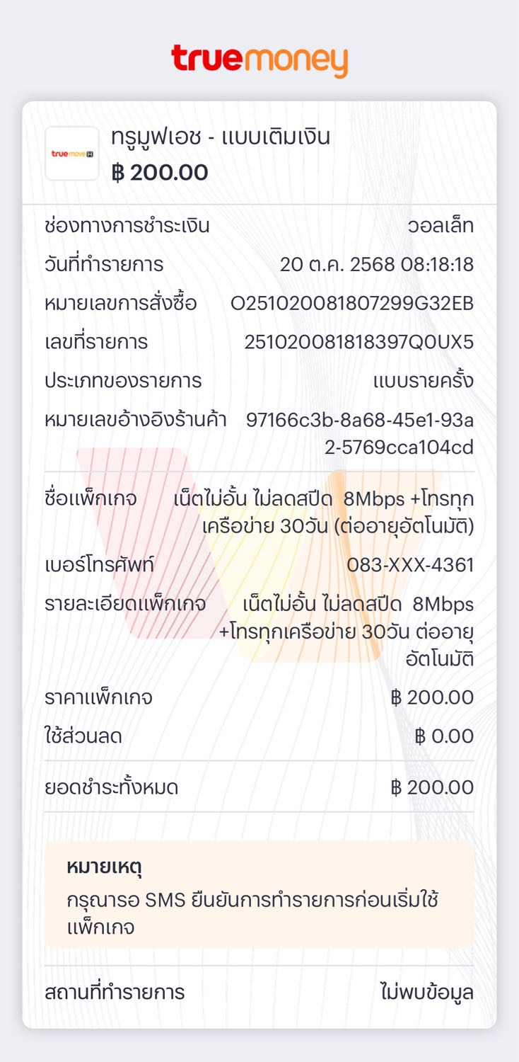 เน็ตรายเดือนต่ออายุอัตโนมัติสมัครในtruemoney ครั้งต่อไปต้องเติมเงินในซิมหรือในtruemoneyคะเพื่อให้หักเงินในเดือนต่อไป