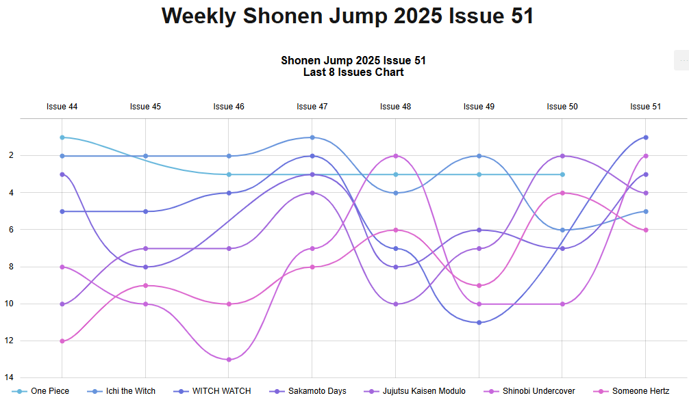 รายงานผลจัดอับดับและการเคลื่อนไหวของ โชเน็นจัมป์ตั้งแต่เล่มที่ 51/2025 ช่วง 8 สัปดาห์ที่ผ่านมา