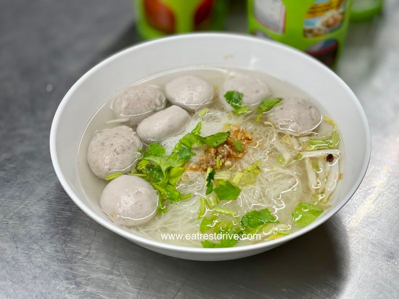 พวก ก๋วยเตี๋ยวลูกชิ้นน้ำใส แบบขอเพิ่มน้ำซุป