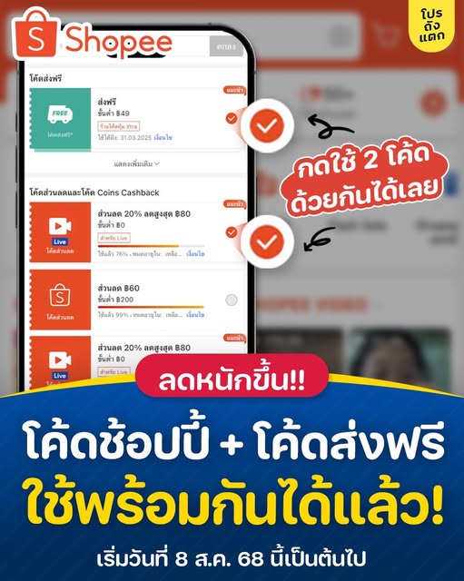 shopee ใช้คูปองส้ม + คูปองเขียว(ส่งฟรี) ได้นานแล้วหรือยัง ตกข่าว