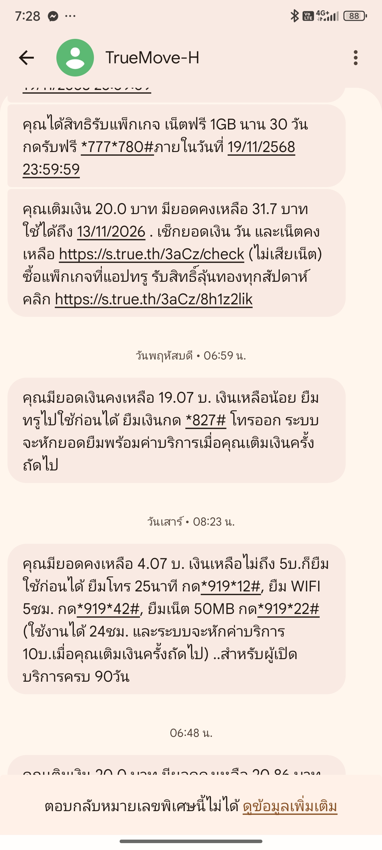 ทางทรูช้วยยังไงได้มั้งครับ นี้ไม่ไช่ครั้งแรกด้วย เช็คข้อความที่หักตังก็ไม่มี โทรยกเลิกข้อความที่คิดค่าบริการก็ไม่มี งงมันหักอะไร เติมตังไว้เท่าไหร่ๆหายหมดเลย 😓