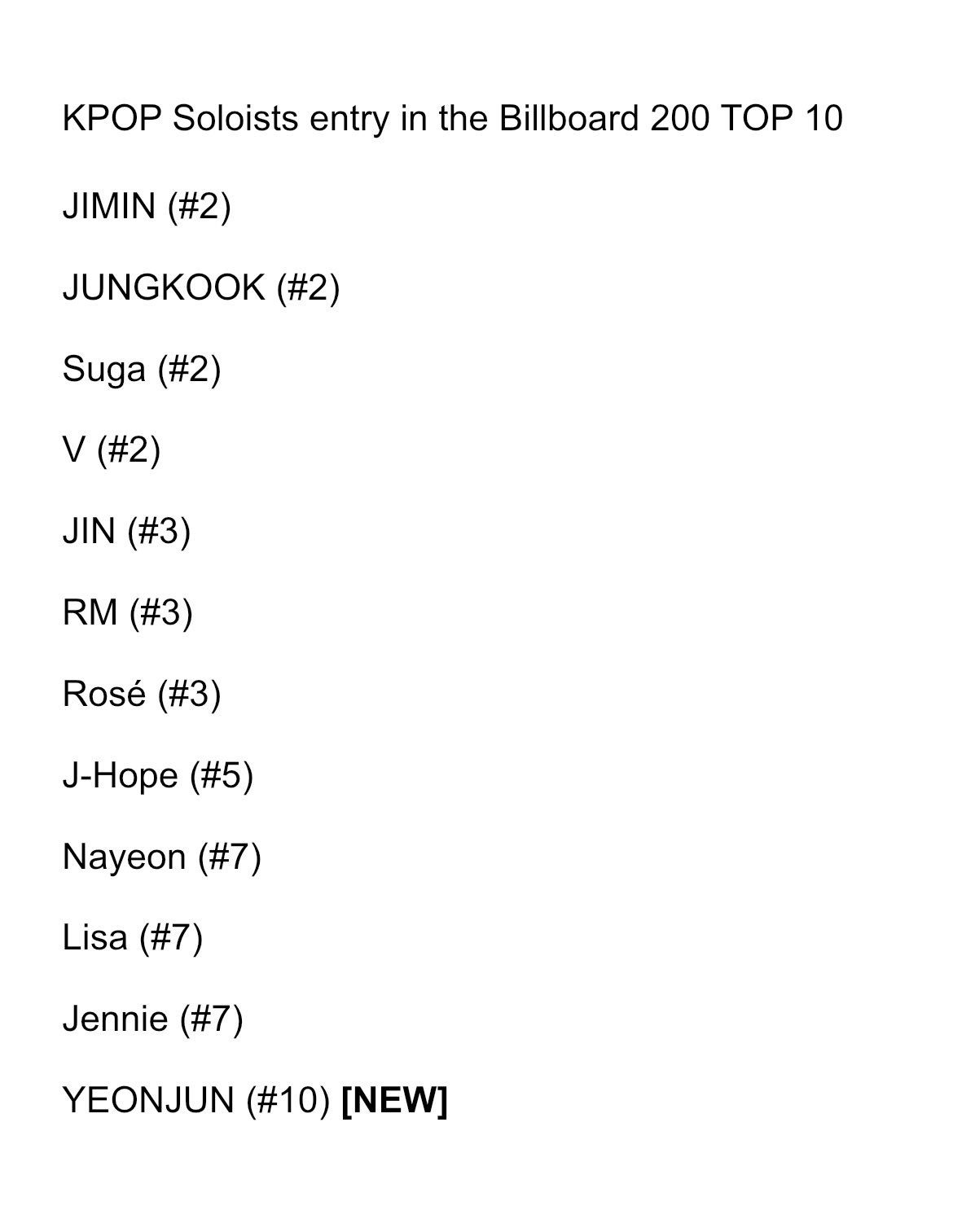 Billboard 200: #10(new) YEONJUN (연준), 'NO LABELS: PART 01' 29,000