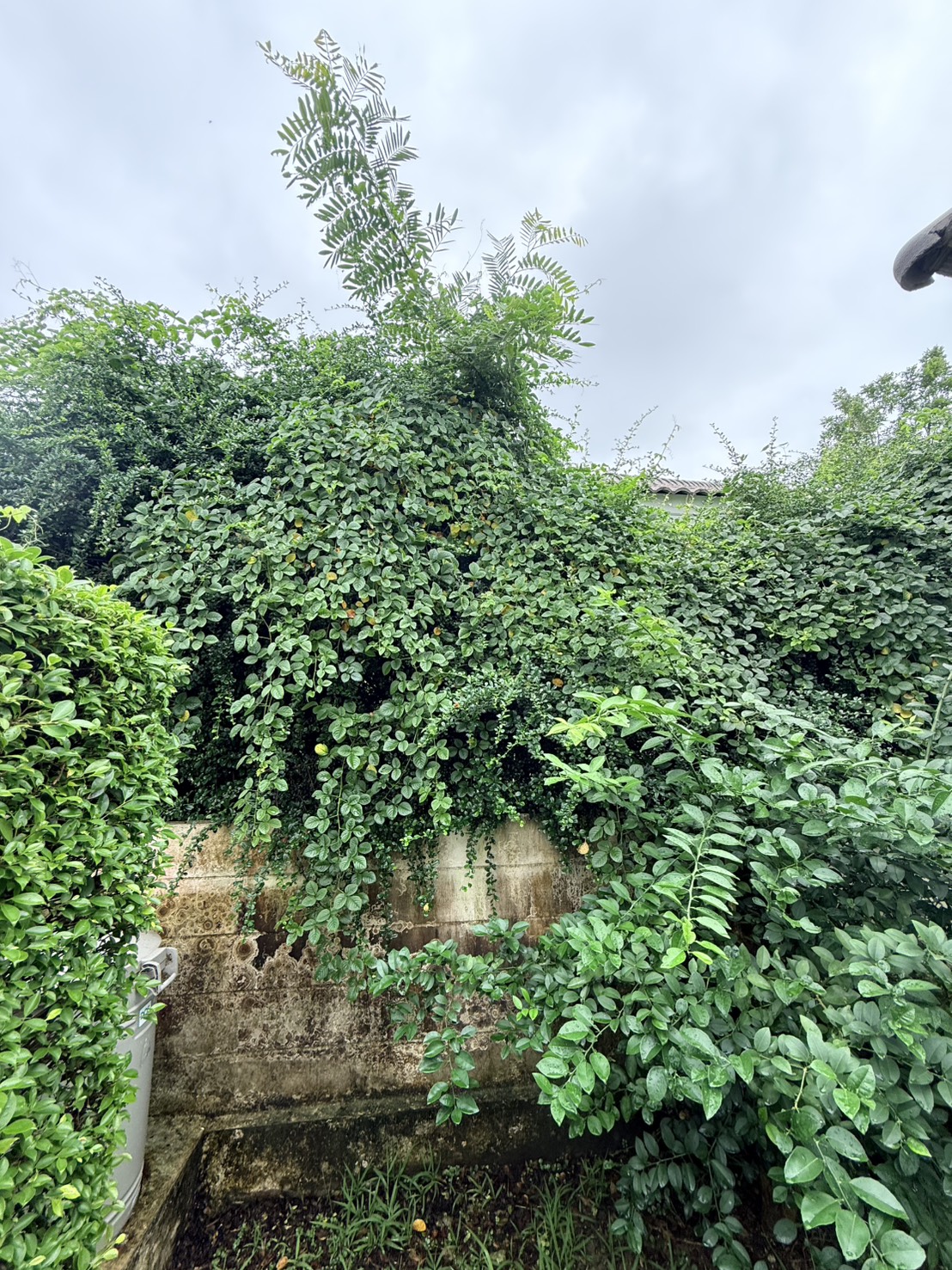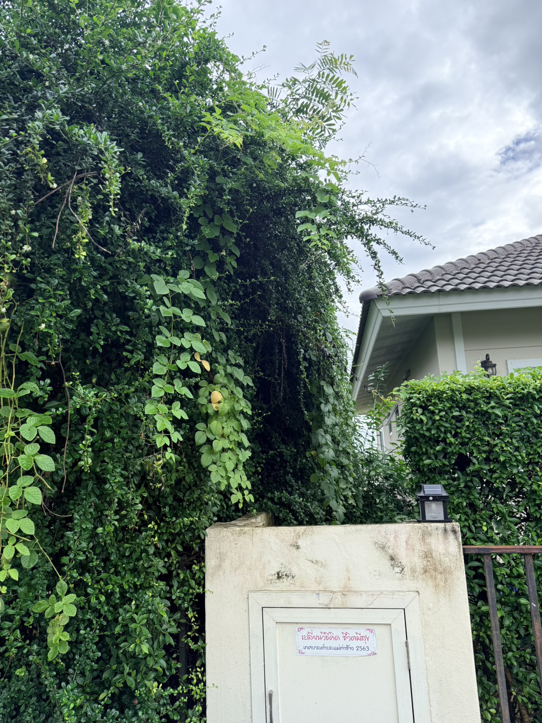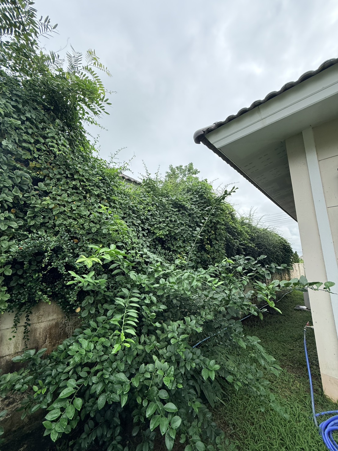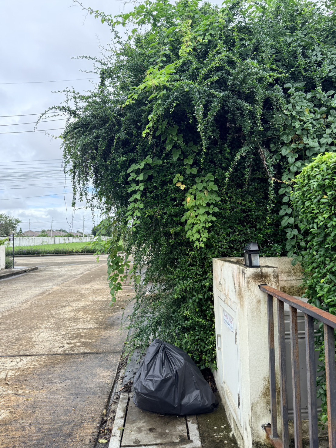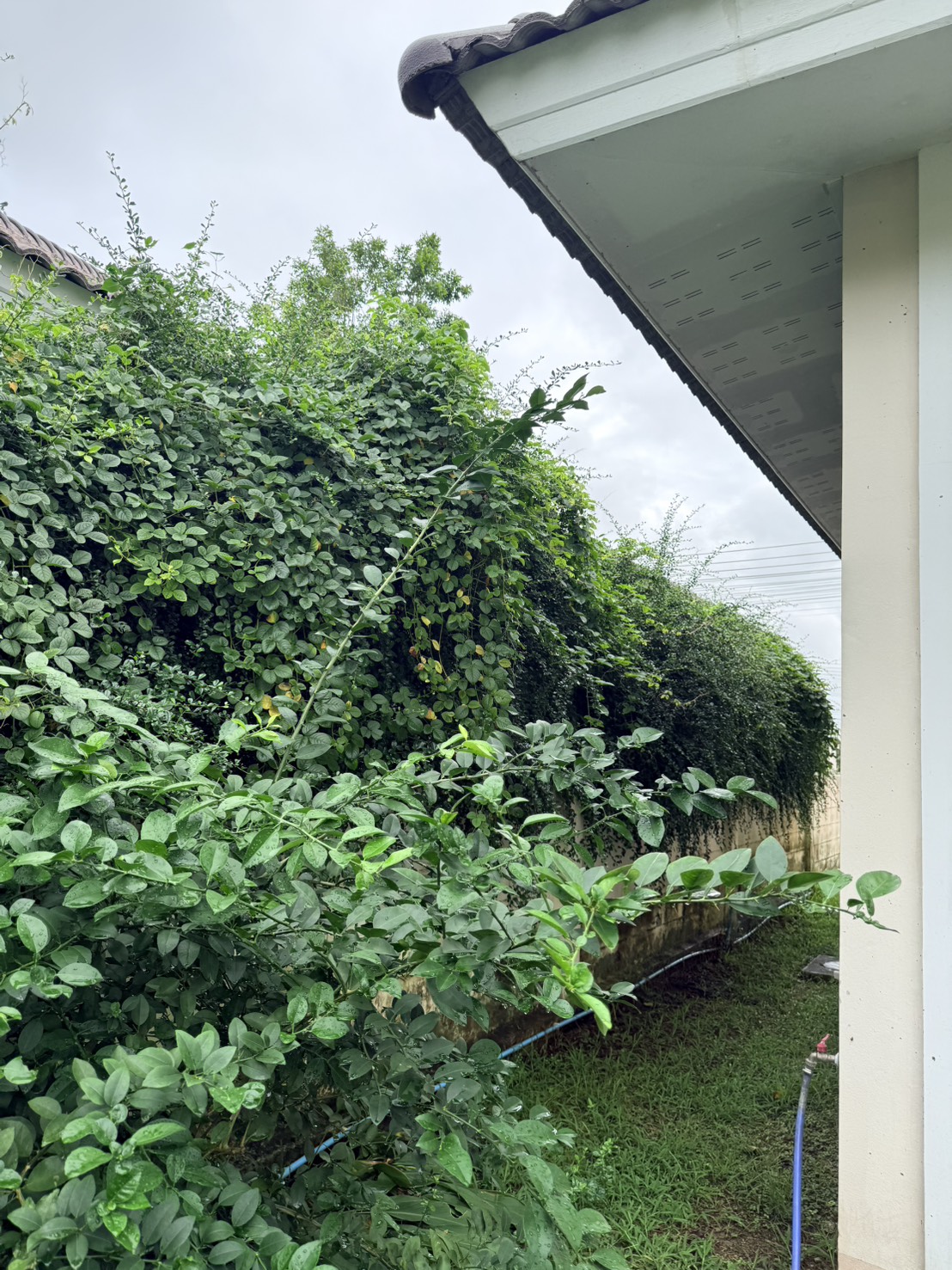 ต้นไม้ข้างบ้านไม่ตัดแต่งเลยข้ามรั้วมาที่บ้านเรา