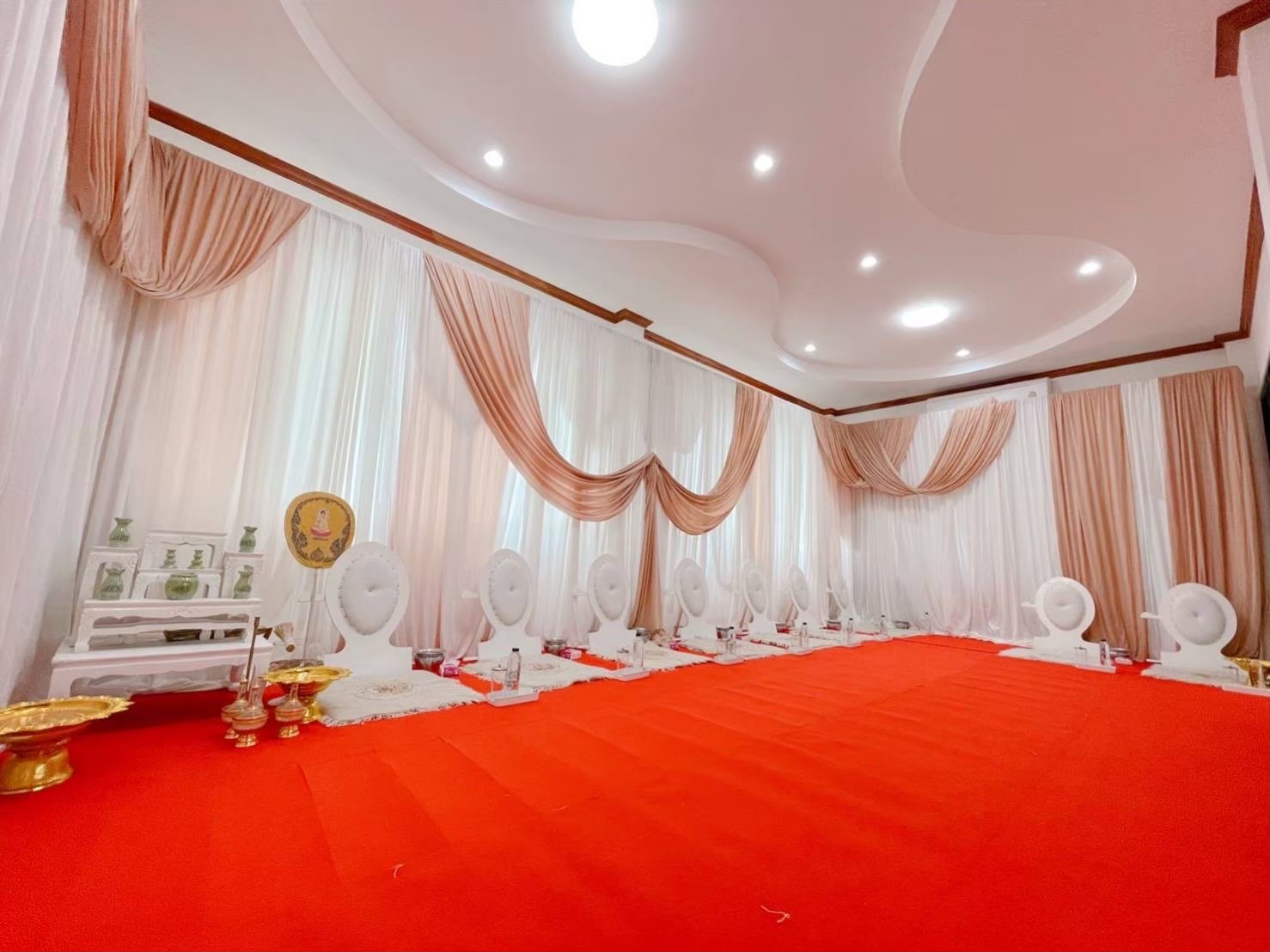 A: สามารถจัดได้ 100% เพราะบริการของเรามีทั้งอุปกรณ์พิธี โต๊ะ เก้าอี้ พรมดอกไม้ และอาหารครบชุด ลูกค้าไม่จำเป็นต้องเตรียมเอง