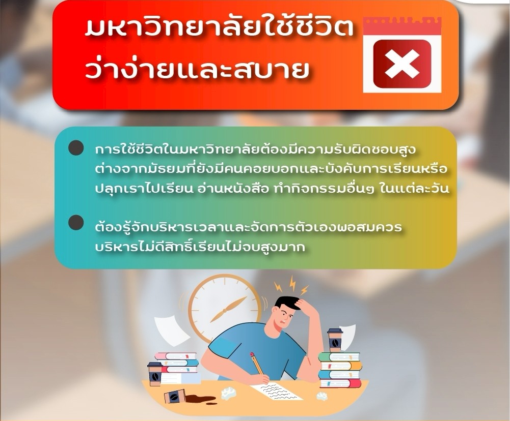 ความรับผิดชอบสูง ไม่มีใครมาปลุกไปเรียนหรือบังคับอ่านหนังสือ การบริหารเวลาไม่ดีมีสิทธิ์เรียนไม่จบสูงมาก!