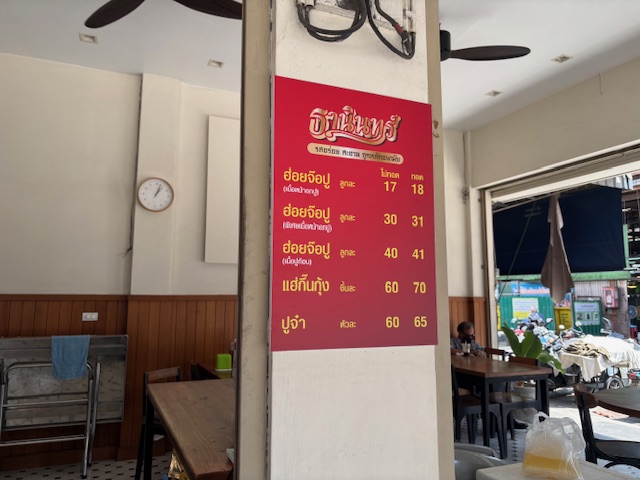 วันนี้พาลูกชายไปจ่ายตลาดด้วย ไปตลาดวายแล้ว หาซื้อกะทิ แช่เย็นไว้พรุ่งนี้เช้ามาทำ แวะซื้อฮอยจ๊อร้านธานินทร์ ฮอยจ๊อร้านนี้คืออีกหนึ่งร้านที่หลายคนอาจไม่รู้จักในโซเชียล แต่ถ้าอยากได้ฮอยจ๊อรสชาติในแบบดั้งเดิมมากๆ ร้านนี้คือร้านที่ทำฮอยจ๊อในแบบนั้น เหมือนจะมีสองราคาให้เลือก ถ้าอยากได้แบบเดิมๆ ก็ลูกละ 17 ถ้าแบบสมัยใหม่ 40 บาท และมันหมู น้ำมันหมูผมก็ซื้อจากร้านนี้ และฮอยจ๊อเดิมๆ มีมันหมูเป็นเรื่องปรกติมากๆ นะครับ บางคนไม่เข้าใจ และที่นี่ฮอยจ๊อคือฮอยจ๊อ มิใช่ไส้หมูสับปรุงรสผสมปูแล้วห่อ (ร้านนี้การบริการหน้าตาคนขายอาจไม่ถูกใจ แต่เชื่อเถอะครับว่า บางครั้ง ปากร้ายใจดียังใช้ได้อยู่ครับ)