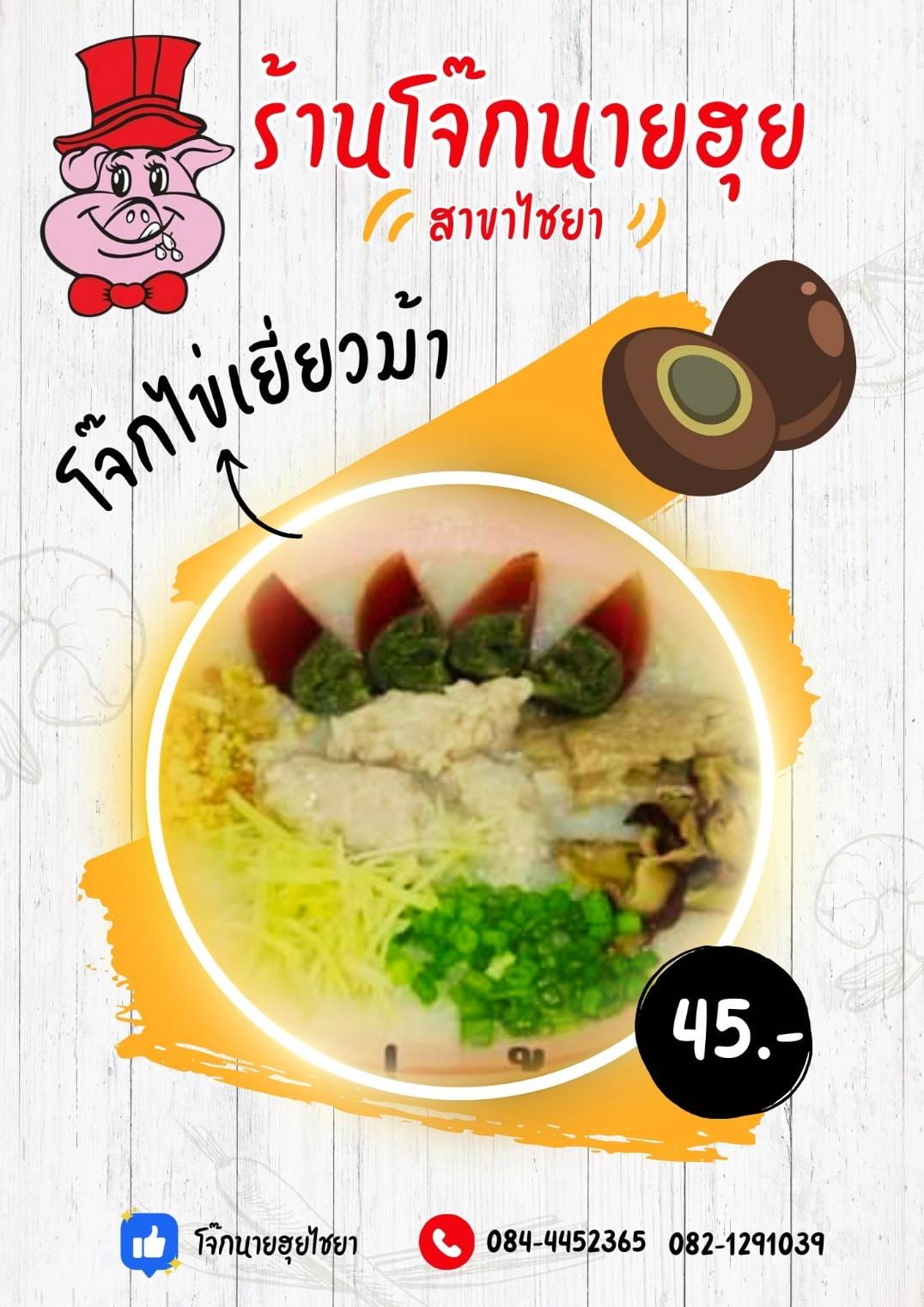 วันนี้ผมขอมาเสนอเฉพาะเมนู โจ๊กไข่เยี่ยวม้า โดยรสชาติของโจ๊กที่การันตีด้วยอายุของร้านที่อยู่คู่กับชาวไชยามาอยู่ว่ามีรสชาติกลมกล่อมอยู่ รวมเข้ากับไข่เยี่ยวม้าที่มีรสชาติเฉพาะตัวอยู่แล้ว ทำให้อรรถรสของโจ๊กเพิ่มขึ้นอย่างมาก ความกลมกล่อมของโจ๊กกับไข่เยี่ยวม้ารวมเข้ากันอย่างลงตัว
