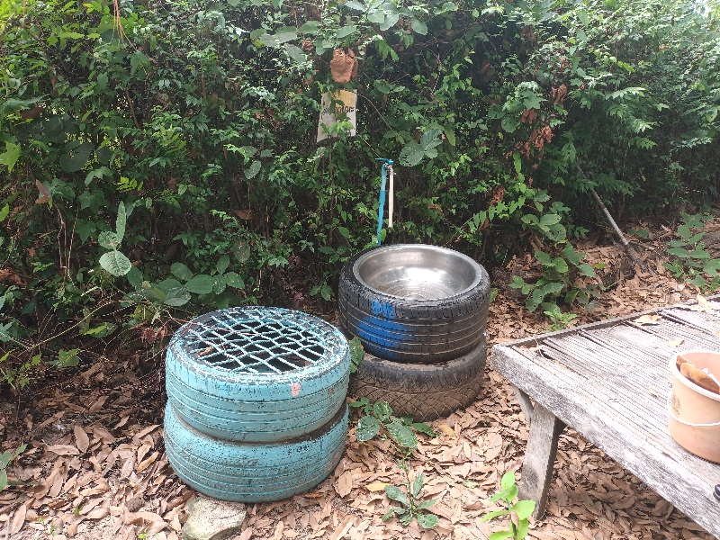 ยกจานไปล้าง ที่ล้างแบบง่ายๆ กลับมาถึง ฟ้าครึ้ม รีบกางทาร์ปผืนเล็กปิดด้านหน้า และทาร์ปเสริมหลังคาโดยด่วน พร้อมรับมือฝนครับ ลมก็พัดแรงจนได้ยินเสียงกิ่งไม้สั่นเหมือนคลื่นในทะเลเลย เลยไม่ต้องใช้พัดลมครับ