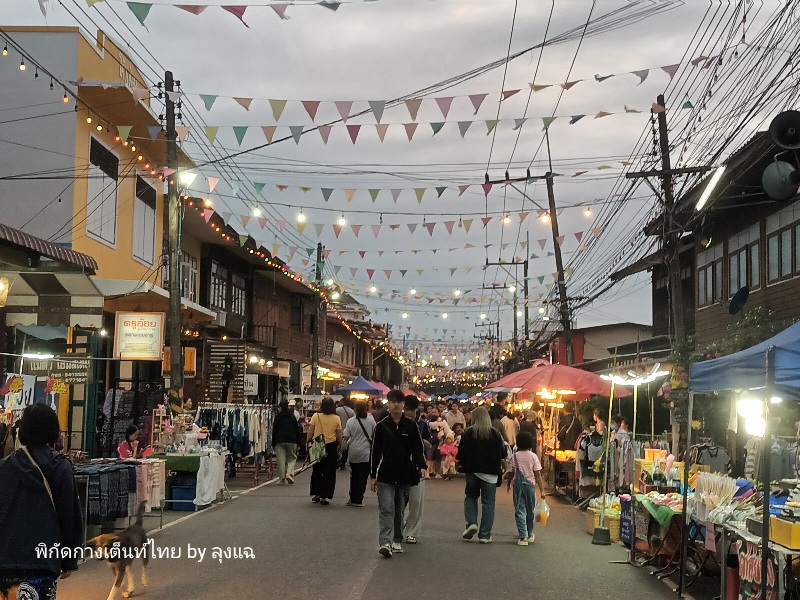 จอดรถตรงกองร้อยอส.ติดปากทางเข้าถนนคนเดินเลย สะดวกมาก ร้านค้าตั้งเกือบหมด บรรยากาศแสงสีสวยงาม ตื่นตาตื่นใจ บวกสภาพบ้านเรือนทั้งไม้ อาคารปูน เก่าใหม่ปะปนกัน แต่กลมกลืนและที่สำคัญยังมีชีวิตเพราะเป็นที่อยู่อาศัยจริงๆ ด้วย