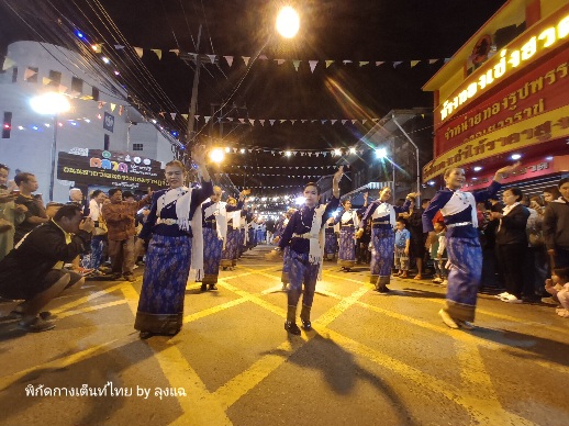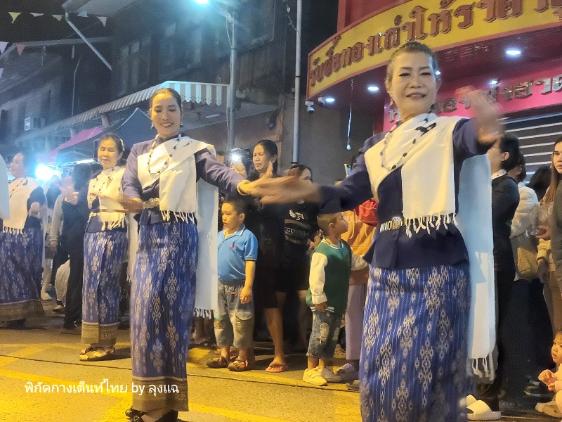 ปวดหน้าแข้ง เดินช้าๆ นั่งพักไปด้วย จนถึงสี่แยกที่เป็นต้นขบวนของจิตอาสาฟ้อนรำ ก่อน 6 โมงเย็นก็ตั้งขบวนเสร็จให้นทท.มาถ่ายรูปได้ เป็นทีมที่ 2 เพราะผมจำนางรำตัวน้อยได้ พี่ๆ ข้างๆ บอกมี 2 ทีมสลับกัน น่าชื่นชมจริงๆ นับเป็นชุมชนที่เข้มแข็งมาก เพราะขบวนนึงมีนางรำทุกวัยน่าจะ 50 ท่านได้ และนี่คือจุดแข็งของถนนคนเดินเขมราฐที่กลายเป็นถนนสายวัฒนธรรมไปแล้ว ออ เก้าอี้ตัวจิ๋วช่วยให้นั่งชม 5 เพลงได้ครึ่งชม.โดยไม่ปวดครับ ชื่นชมมากๆ ออ มีการรำอีกหนึ่งหรือสองรอบครับ
