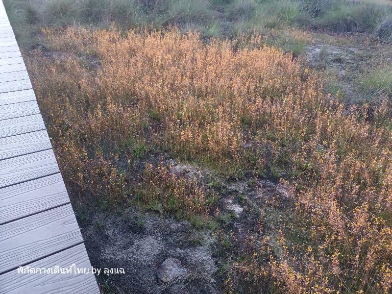 ย้อนกลับทางเดิมได้หลายร้อยเมตร ฟ้าสว่างชัดเจนแล้ว คราวนี้เห็น 2 ข้างทางซึ่งจะมีดอกไม้ป่าเล็กๆ เหมือนวน.น้ำตกผาหลวง แต่จะย่อส่วนมา ช่วงที่มีน้ำขังจะสวยงามโดดเด่น ชัดเจน จนอดลงไปถ่ายรูปไม่ได้ เป็นแผ่นหิน ไม่ได้เหยียบย่ำอะไร ออ สมเด็จพระพันปีหลวงเคยเสด็จมาด้วยครับ