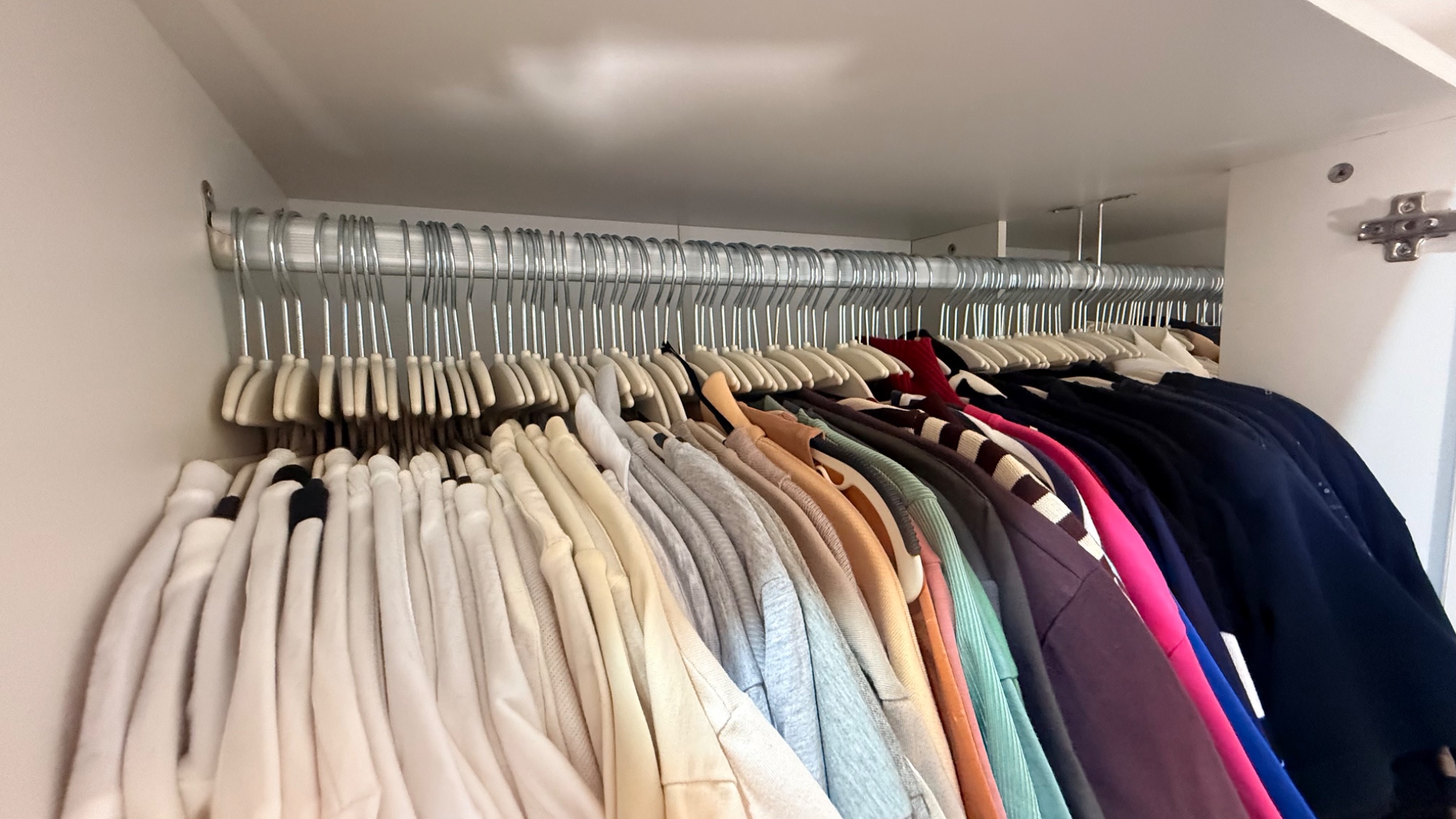 🪄ว่าด้วยเปลี่ยนไม้แขวนเสื้อทั้งหมด พยายามหาแบบที่แขวนแล้วไม่กินเนื้อที่ของราว เพราะตัวแขวนเป็นวัสดุแบบเส้นเล็กๆ แข็งแรง หมุนได้ 360 องศาเลย และลองแขวนแยกเป็น Zone ตามสึเสื้อผ้า น่าจะช่วยในการหาเสื้อผ้าใส่แต่ละวันง่ายขึ้น (ความคิดส่วนตัวนะคะ)ด